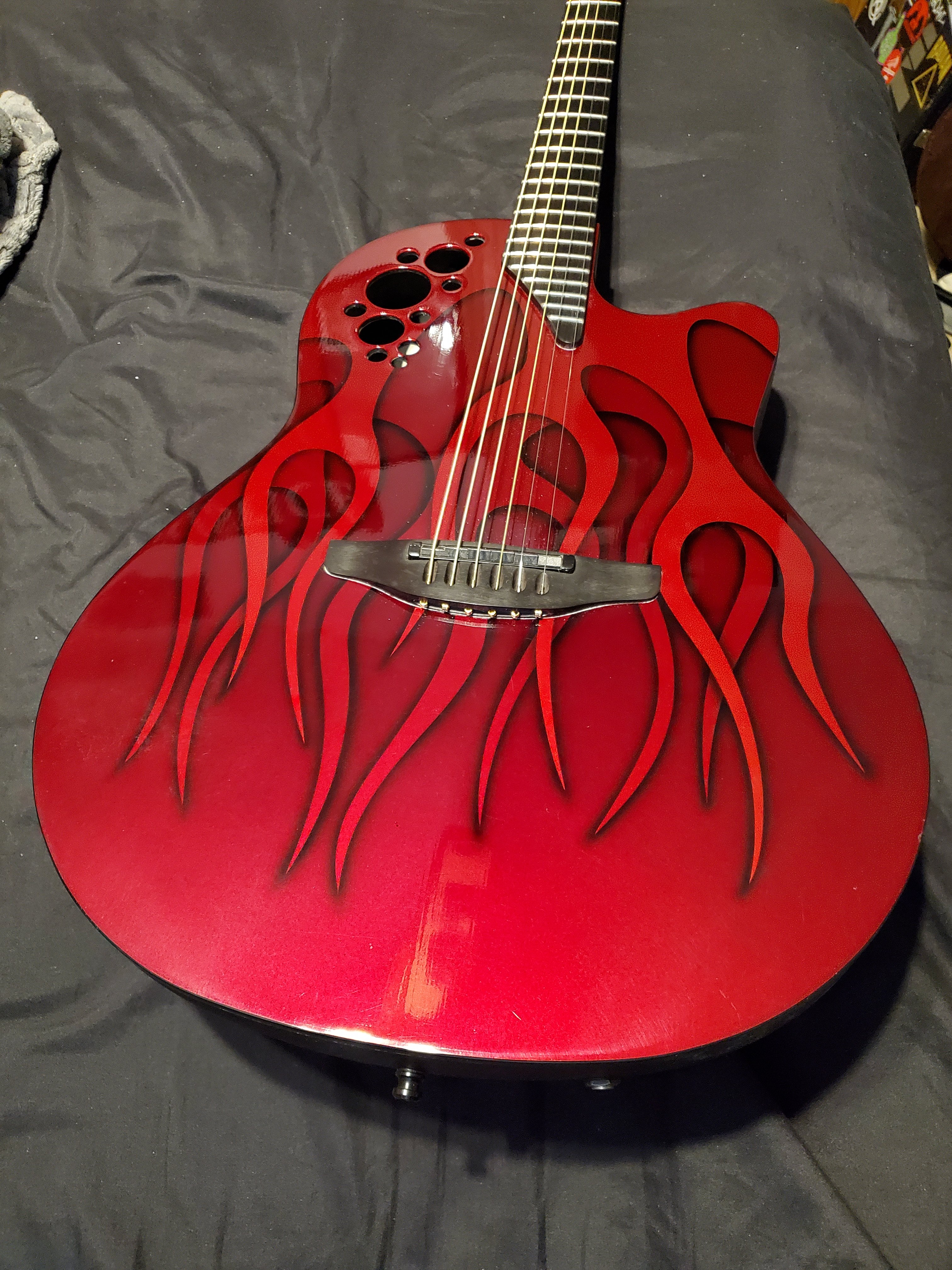 After Ovation folded, the Custom Shop kept making guitars. When Fender brought the company back, they released them as the American SX Main Street series. This is a Mahogany neck and top, Lyrachord bowl (obviously, it's an Ovation), and a Fishman Flex Blend system on board.