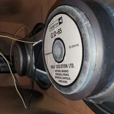 Made an offer, seller accepted and just got home with it. The cab appears to be plywood, assuming birch, but is front loaded and also separated into an upper and lower compartment, neat. The speakers are in fact, the G12-65.