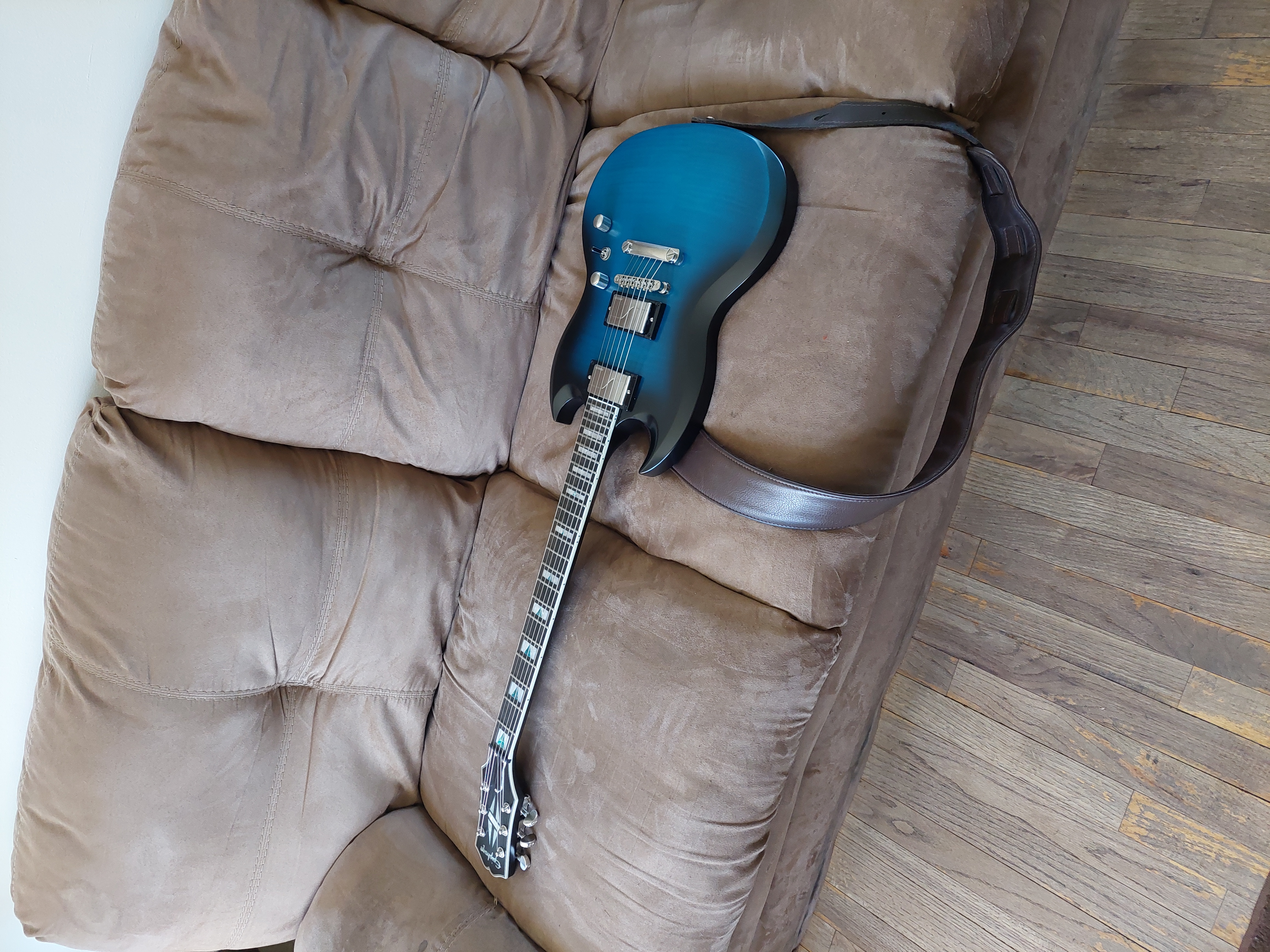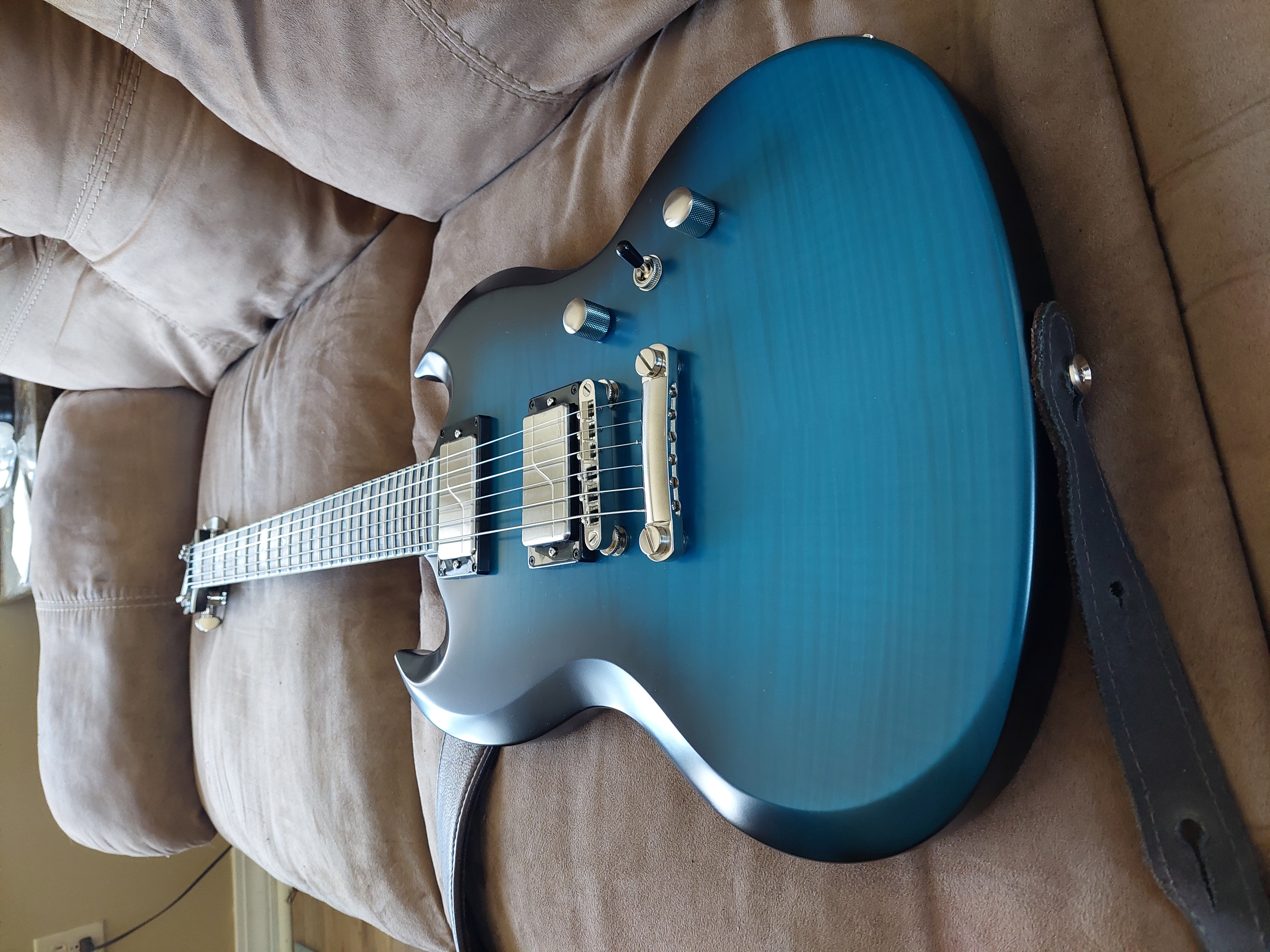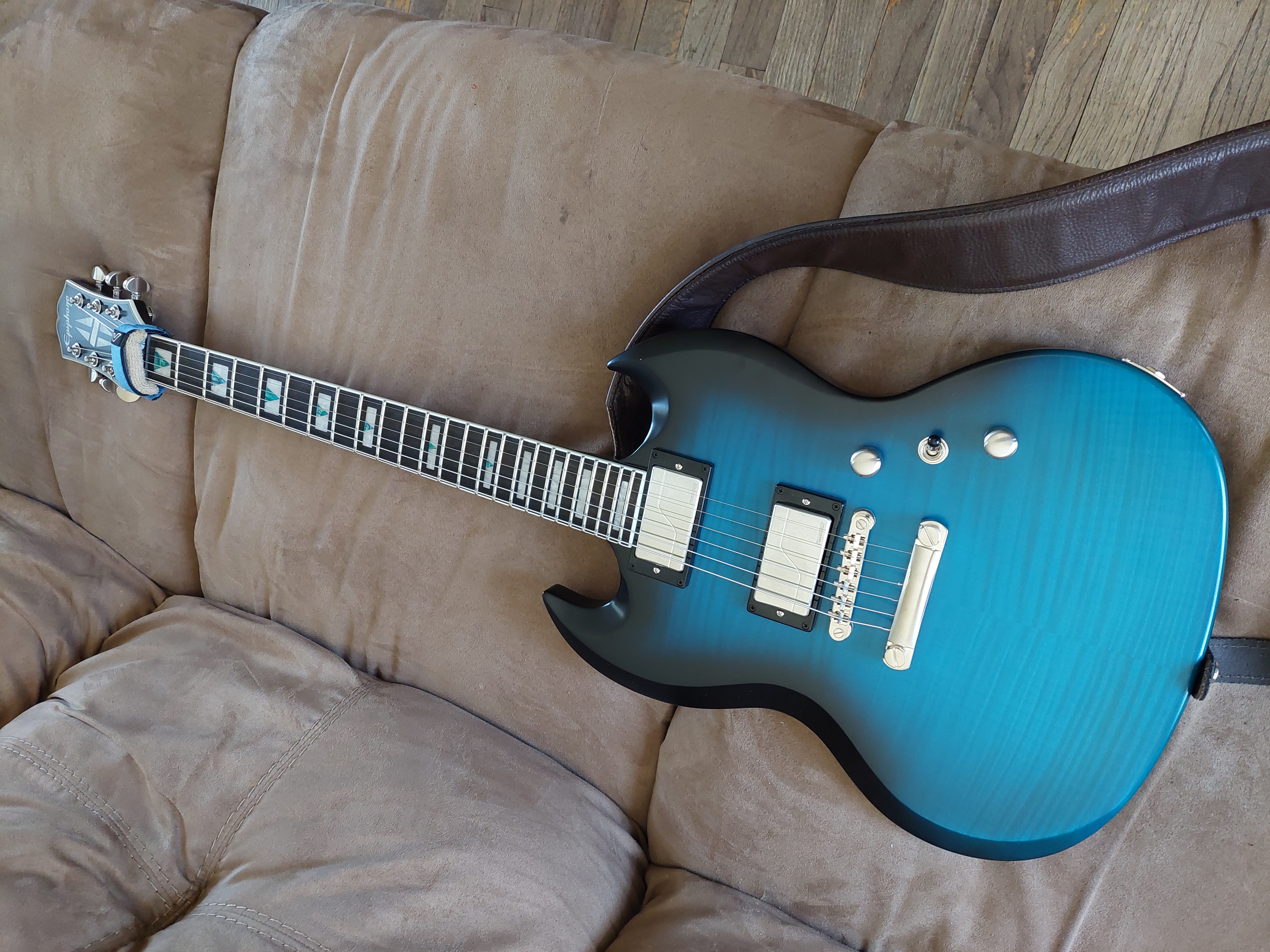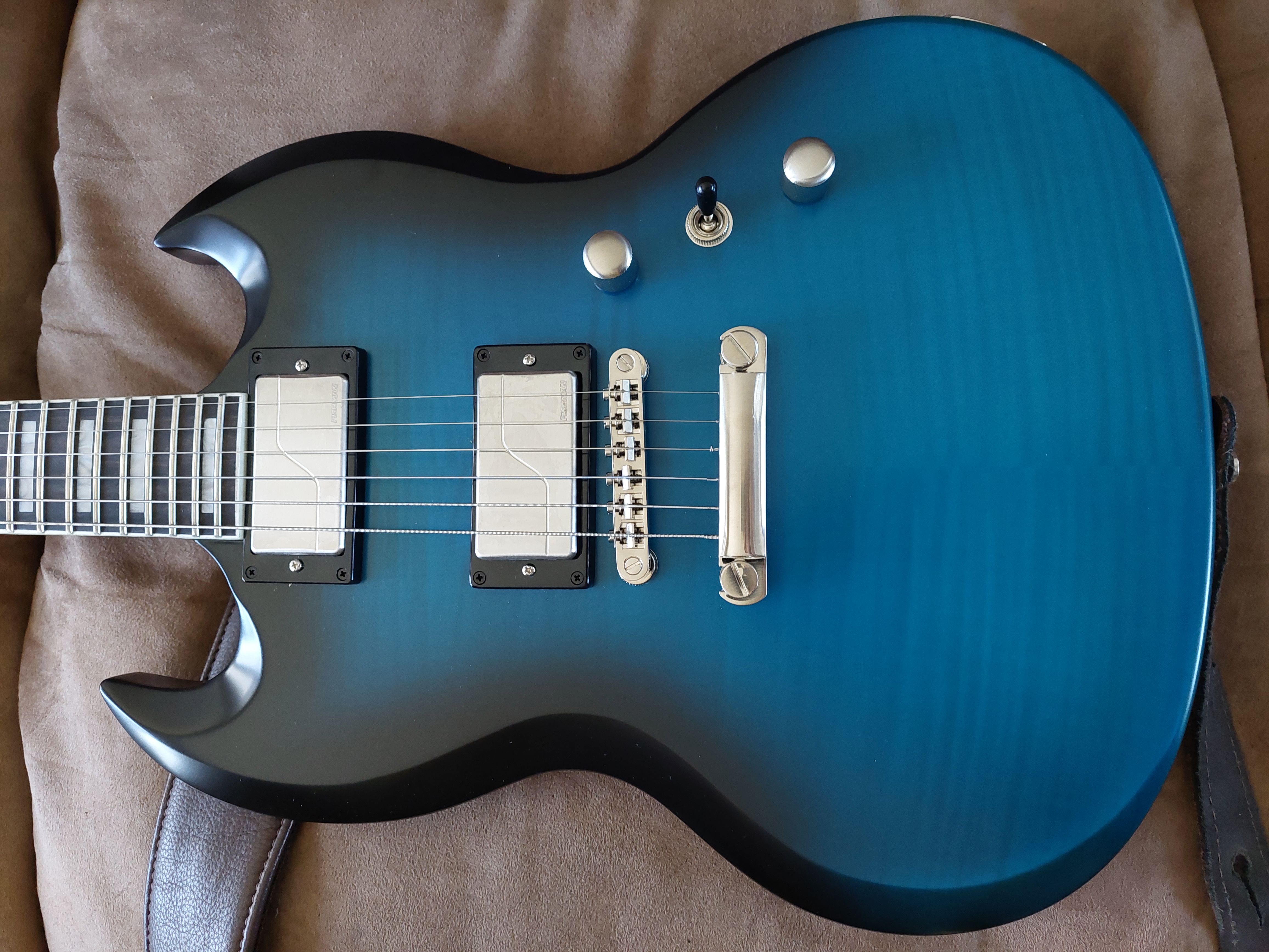 There is some neck dive as expected with an SG but it's not terrible. The Fishman modern pickups have plenty of heat on tap.