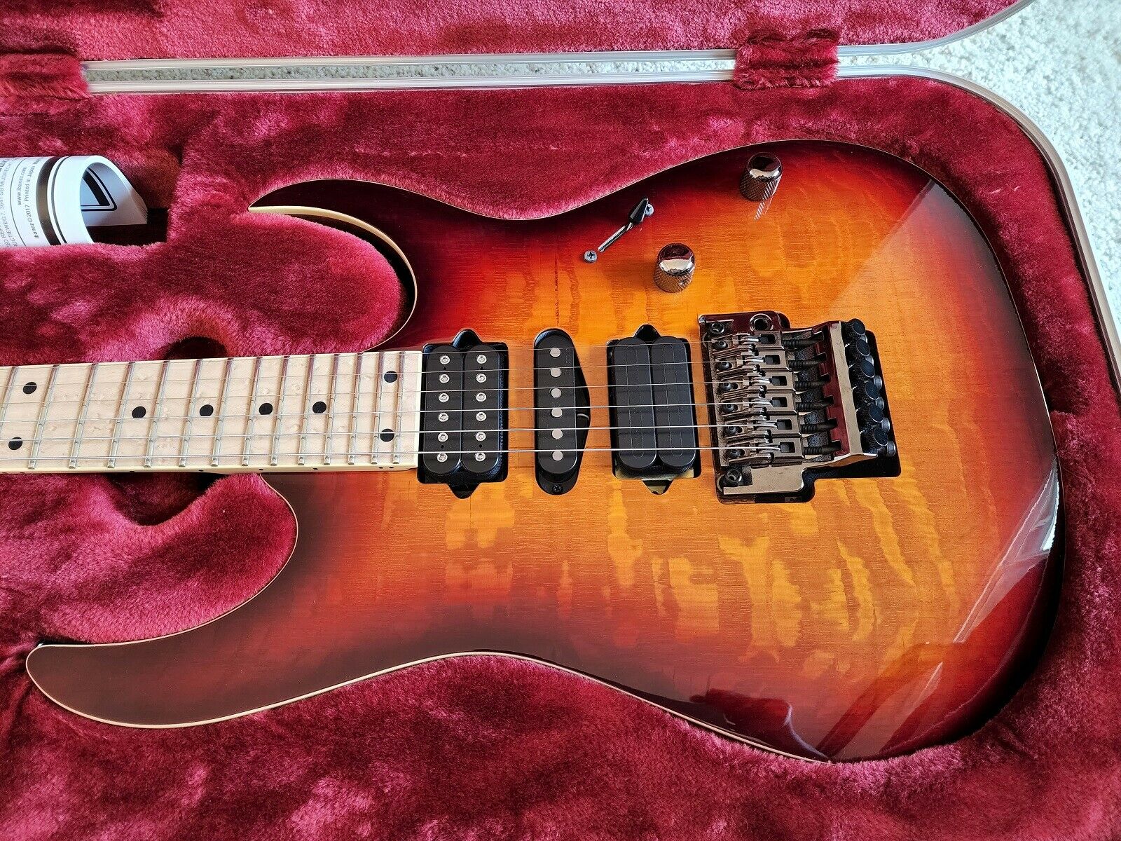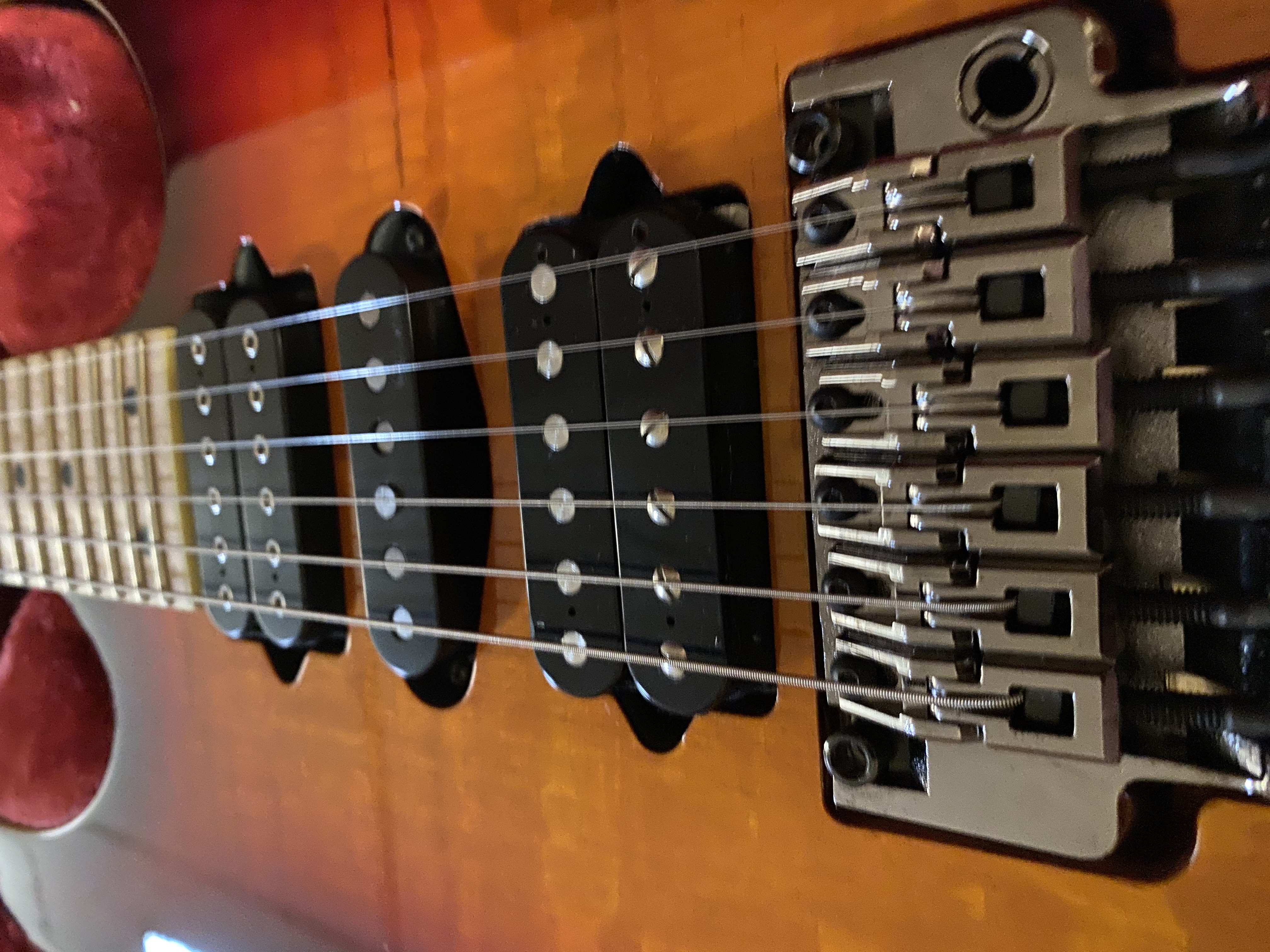I saw these and fell in love with the finish on them, and I since I don't own a single H/S/H guitar I figured I 'd hunt one down and try it out. It came with an X2n in the bridge and a Breed in the neck. The X2N is out now in is a a BK Holy Diver and the breed is staying, I like it . the True Velvet in the middle ? maybe will be yanked I'll have to play with it some more, I may drop in a Heavy Blues II and see how that sounds since I have one laying around here somewhere.