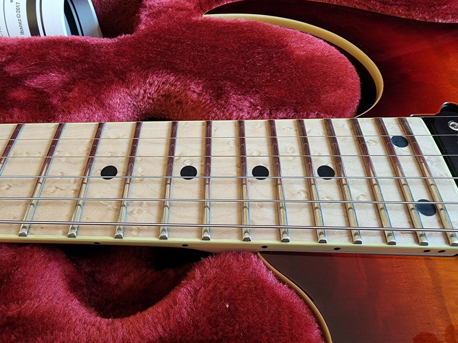 Pretty flat 17" radius, very fast neck locking trem posts Edge trem Mahogany body lacewood top huge frets, this may turn into my main gigging guitar as I hate to take my USA Jackson SL-1 out with me. I'm always worried it may get dinged up or worse. Going to try it out next weekend at a gig and see how It goes , so far I'm loving it.