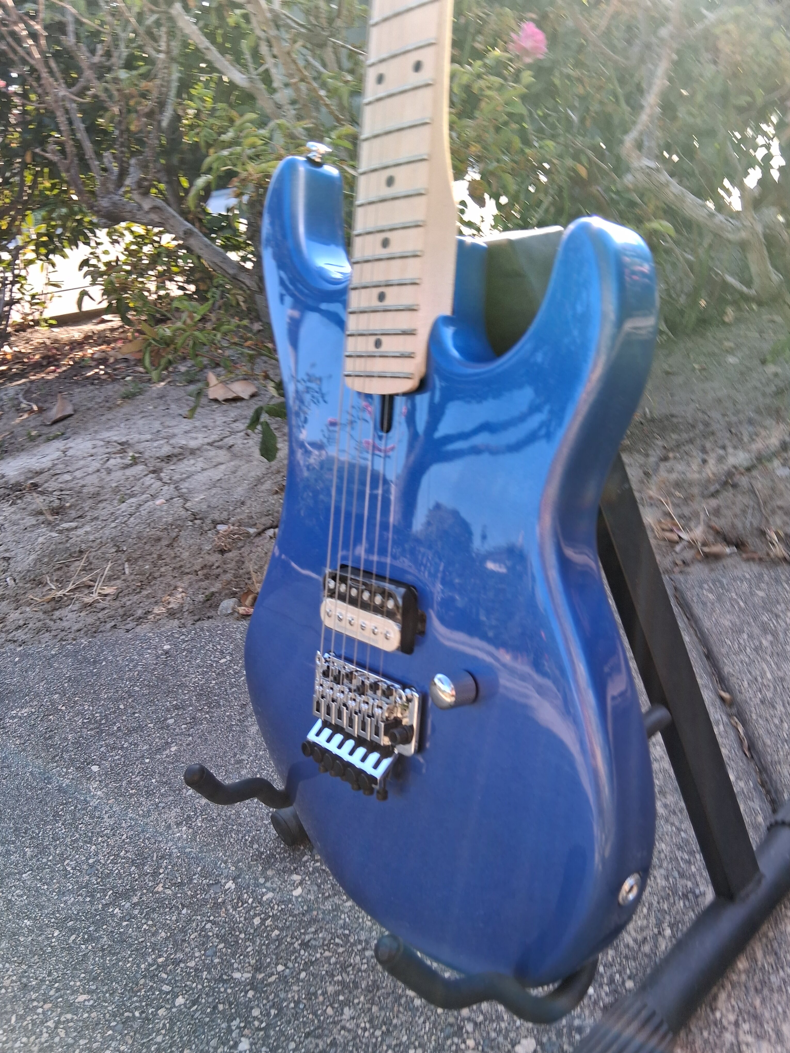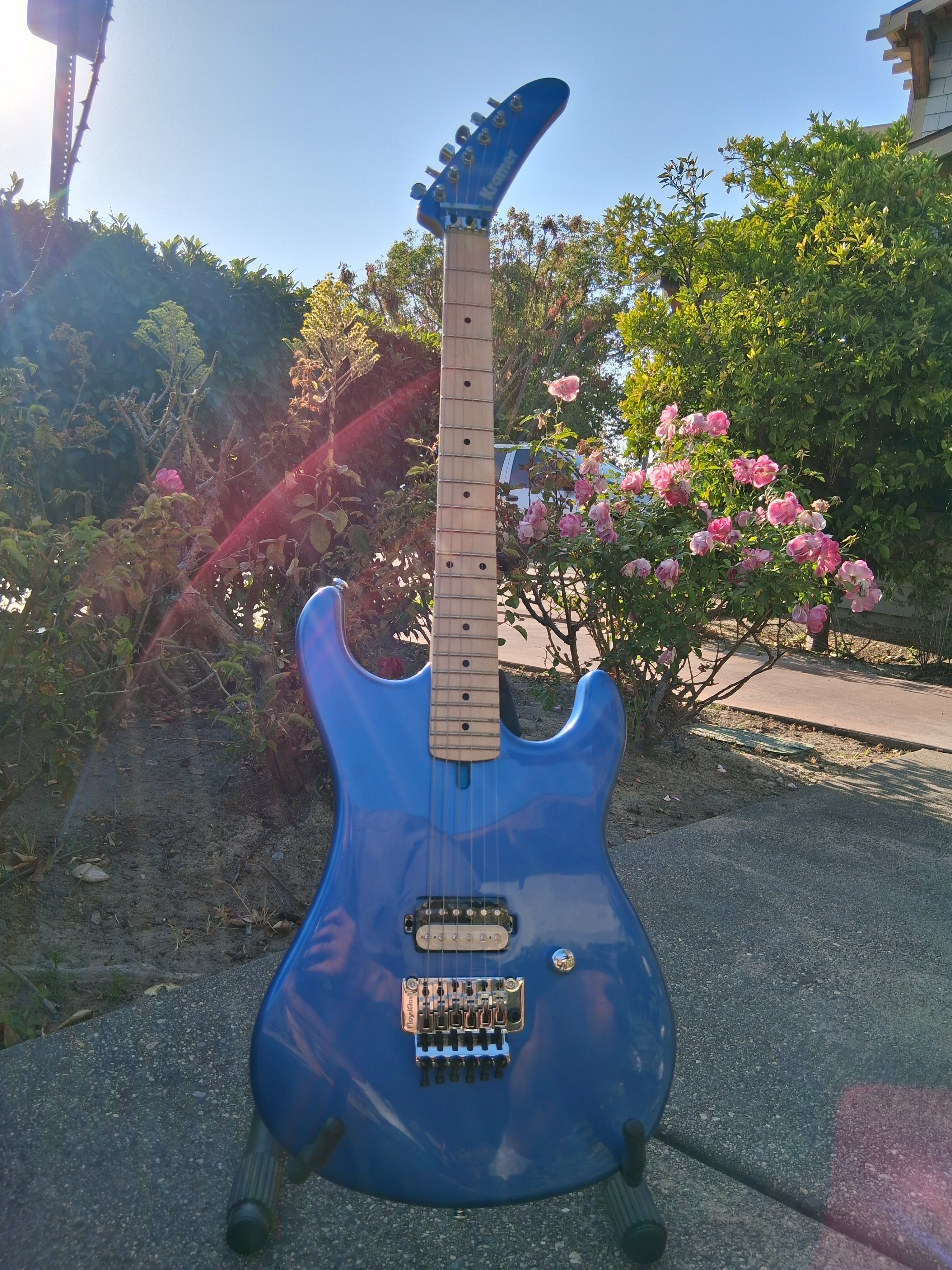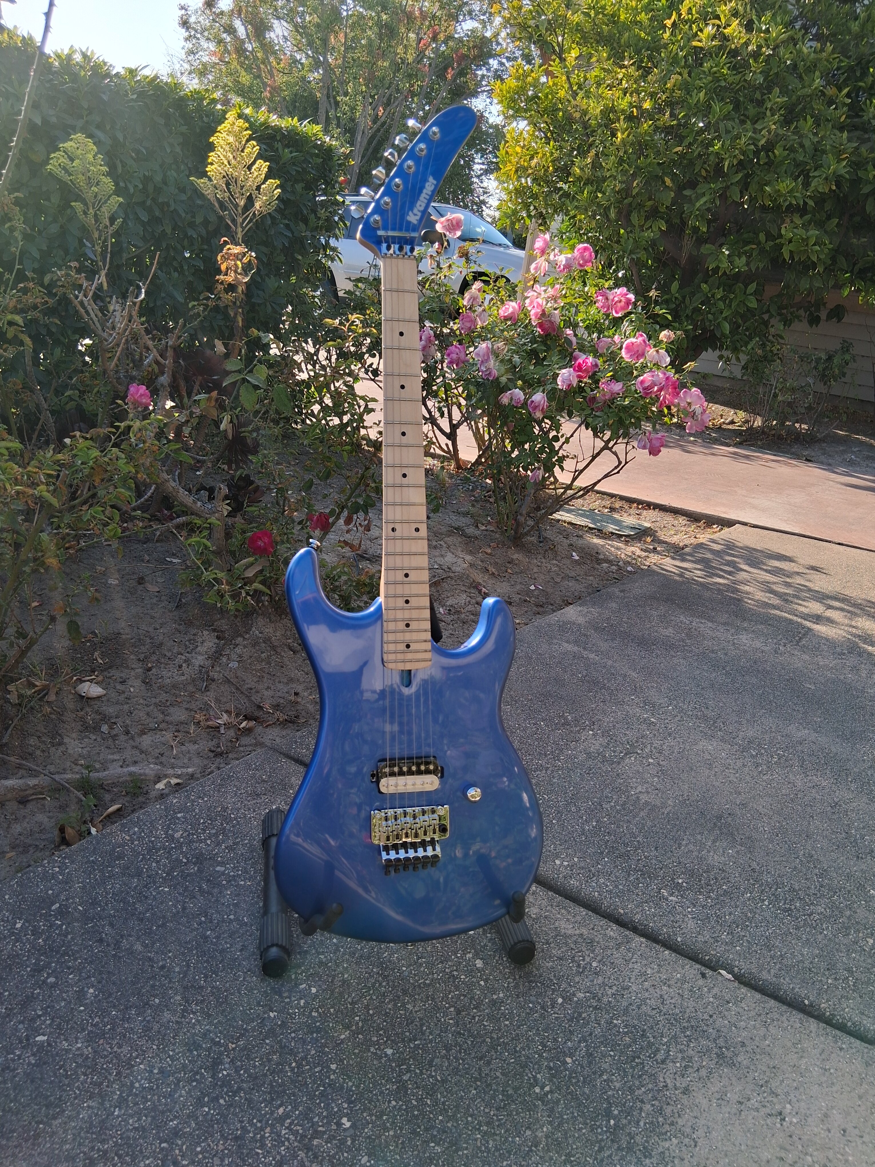 Overall that Kramer neck is butter and the K Speed Slim Taper C profile is very unique and well very "Kramer" for a lack of a better term and worth it for that aside from the great body, hardware and pups. Super flat 12 radius maple board makes it that much better. There is a finish on it but it's very light and definitely no heavy Gloss garbage you find on Fenders with glossed necks..... just solid finish and great feeling neck overall that really gets nice and fat and comfy as you go up to the 12th fret...... that C Slim Taper and that Kramer feel.......