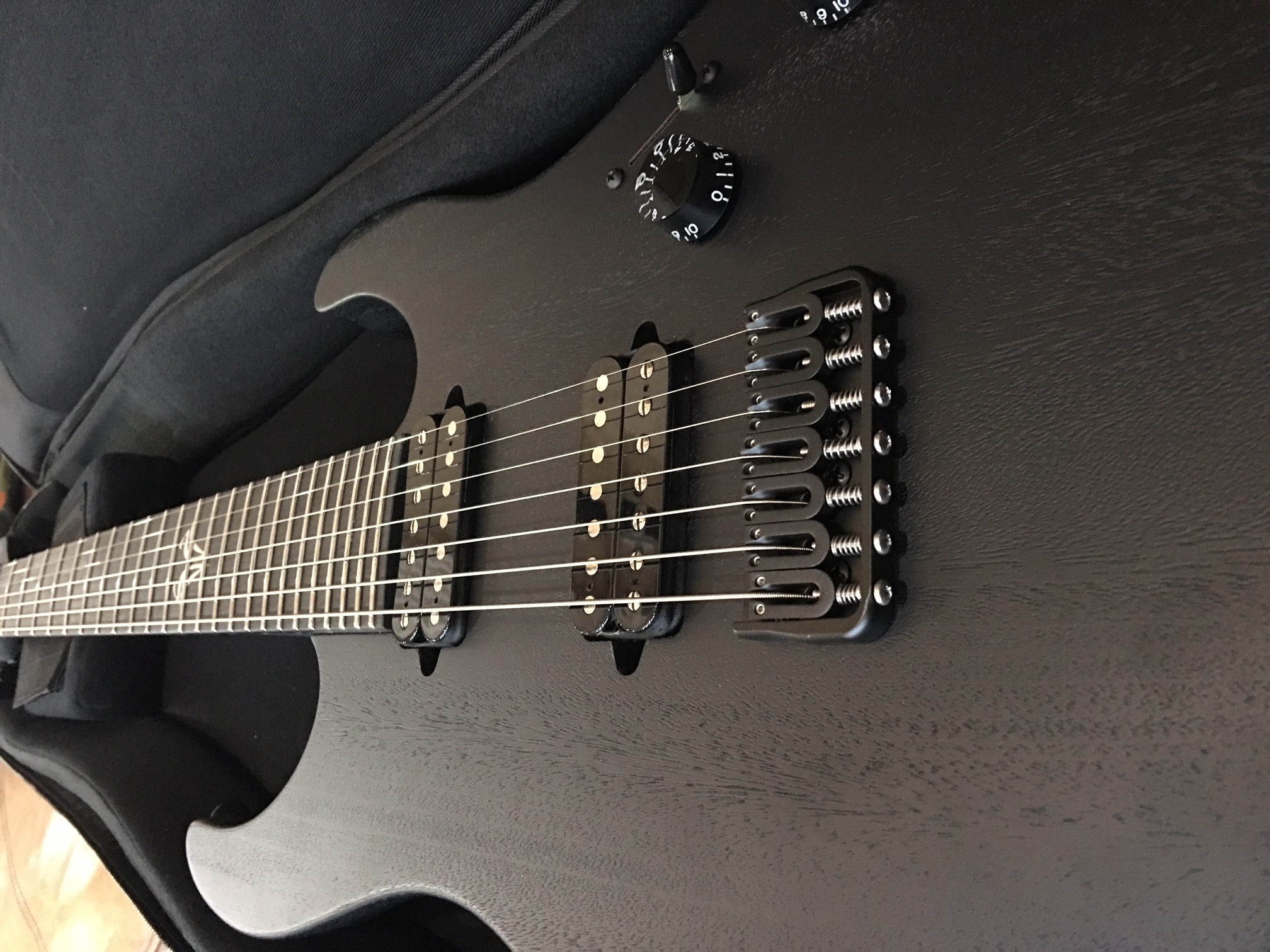 I knew Suhr would be good stuff and I wasn't disappointed. The black satin finish is awesome. It's a little rough, not smooth, but gritty. I can feel the wood and I love that. It reminds me a little bit of the body finish of a Caparison Dellinger HGS that I used to have. It just feels mean when I'm playing it.