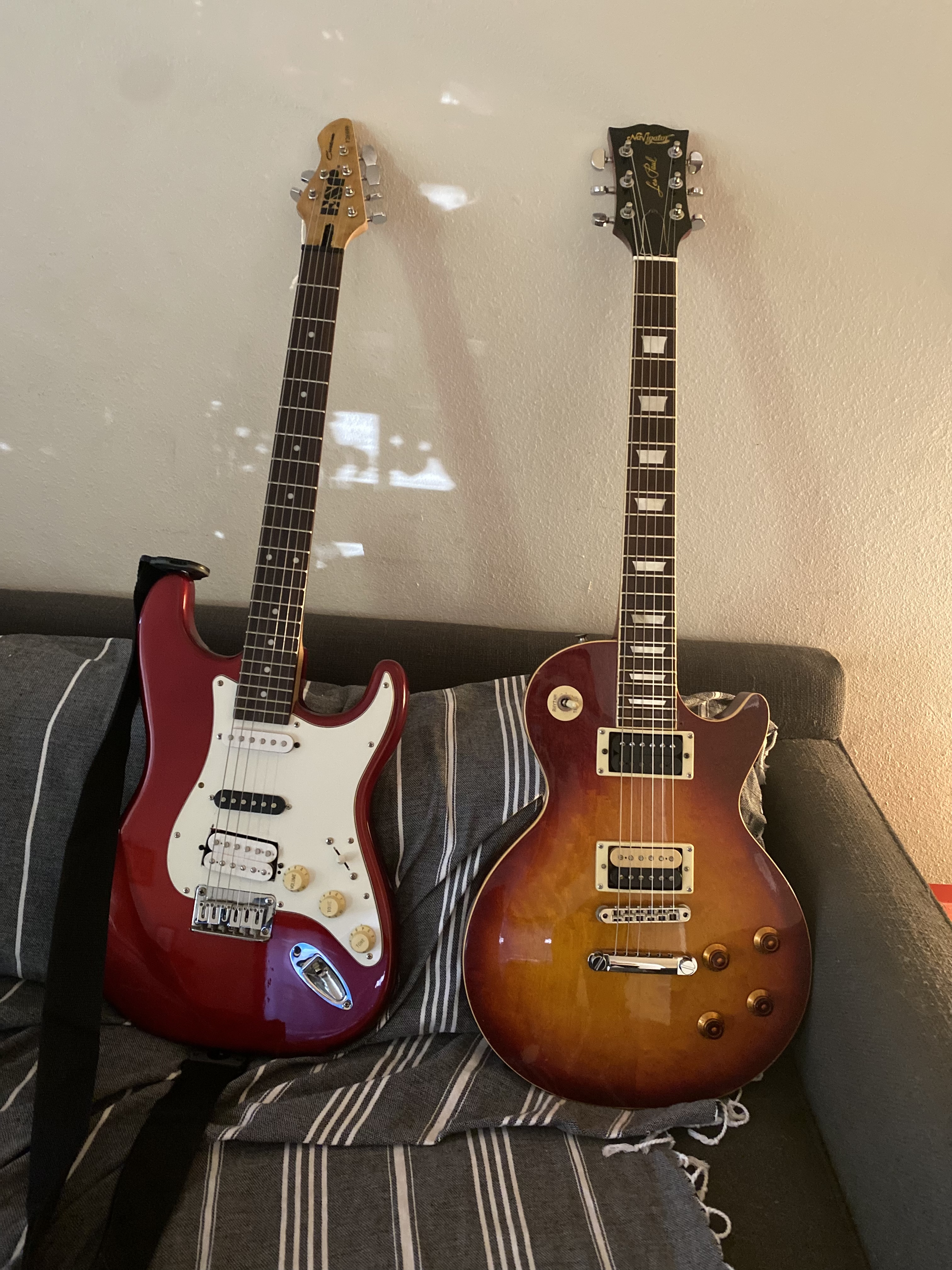 Came home to find two new boxes for the weekend !! One is a 70s navigator les Paul that plays as good as it looks ! The other is an old esp strat but was a pawn shop buy so I think it’s a partscaster cheapish feeling body but plays pretty well ! All things considered .