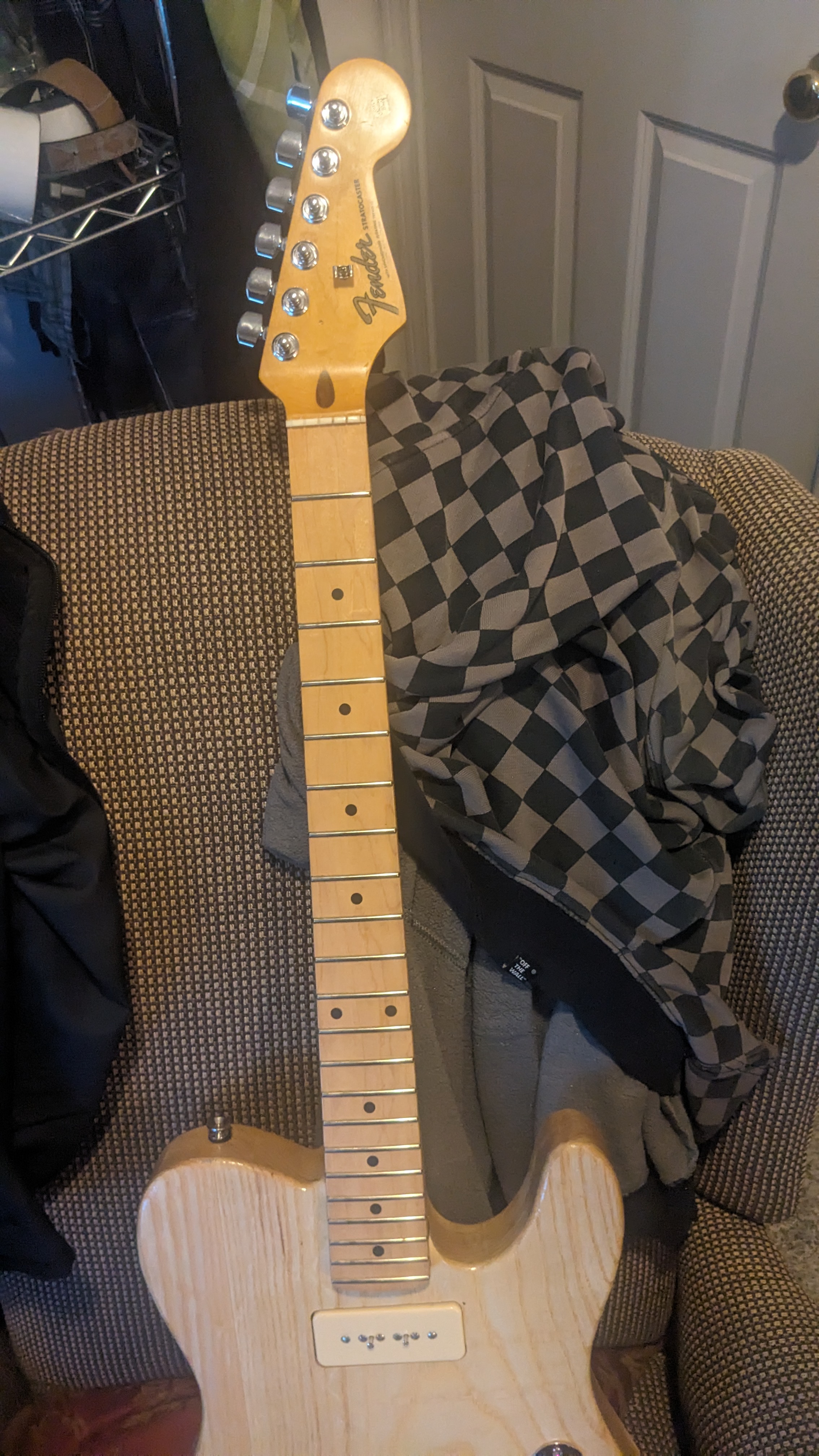 This one is a fender custom shop body rescue, with a 70s mighty mite body, and it's turned into a fantastic guitar - the original plan was to sell it and downsize my incredibly large "parts drawer" that is basically an entire garage of hardware and bodies and nicknacks i keep for repairs, but i would never get the $ its probably worth as a guitar, so i keep playing it ?
