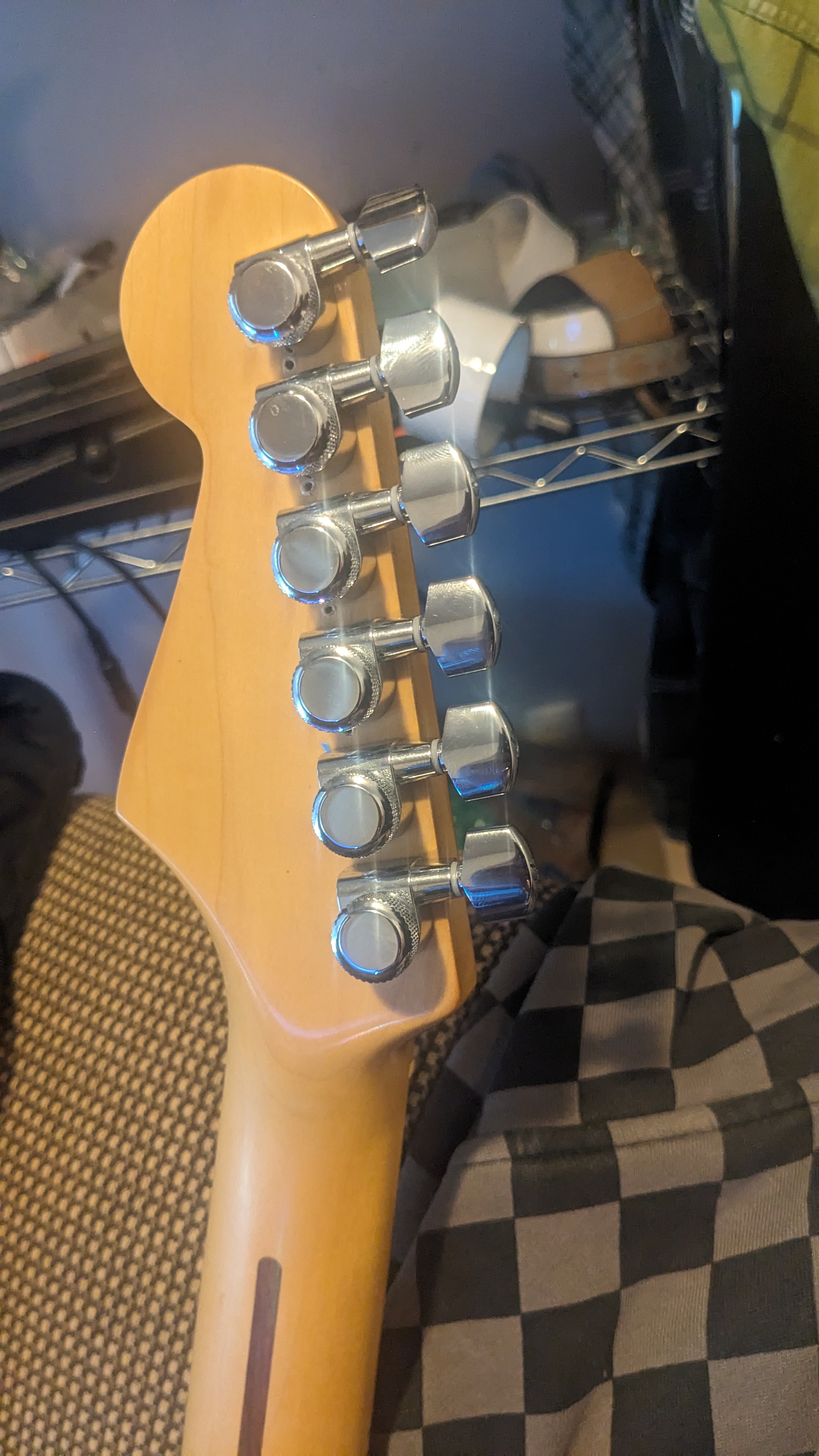 Got some OEM locking tuners on it, this thing is gonna be my boomer cover band machine, to go with my other partscaster tele
