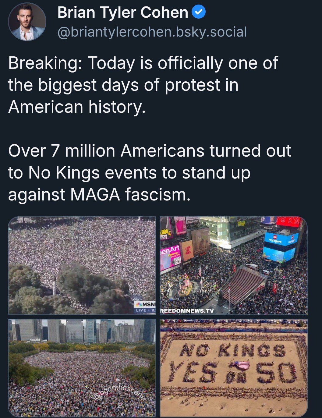 Every single No Kings protest, all 2,500+ of them across the country, made Mike Johnson and House Republican leadership look like lying sacks of shit for all the bullshit that spewed out of their mouths about it this week.