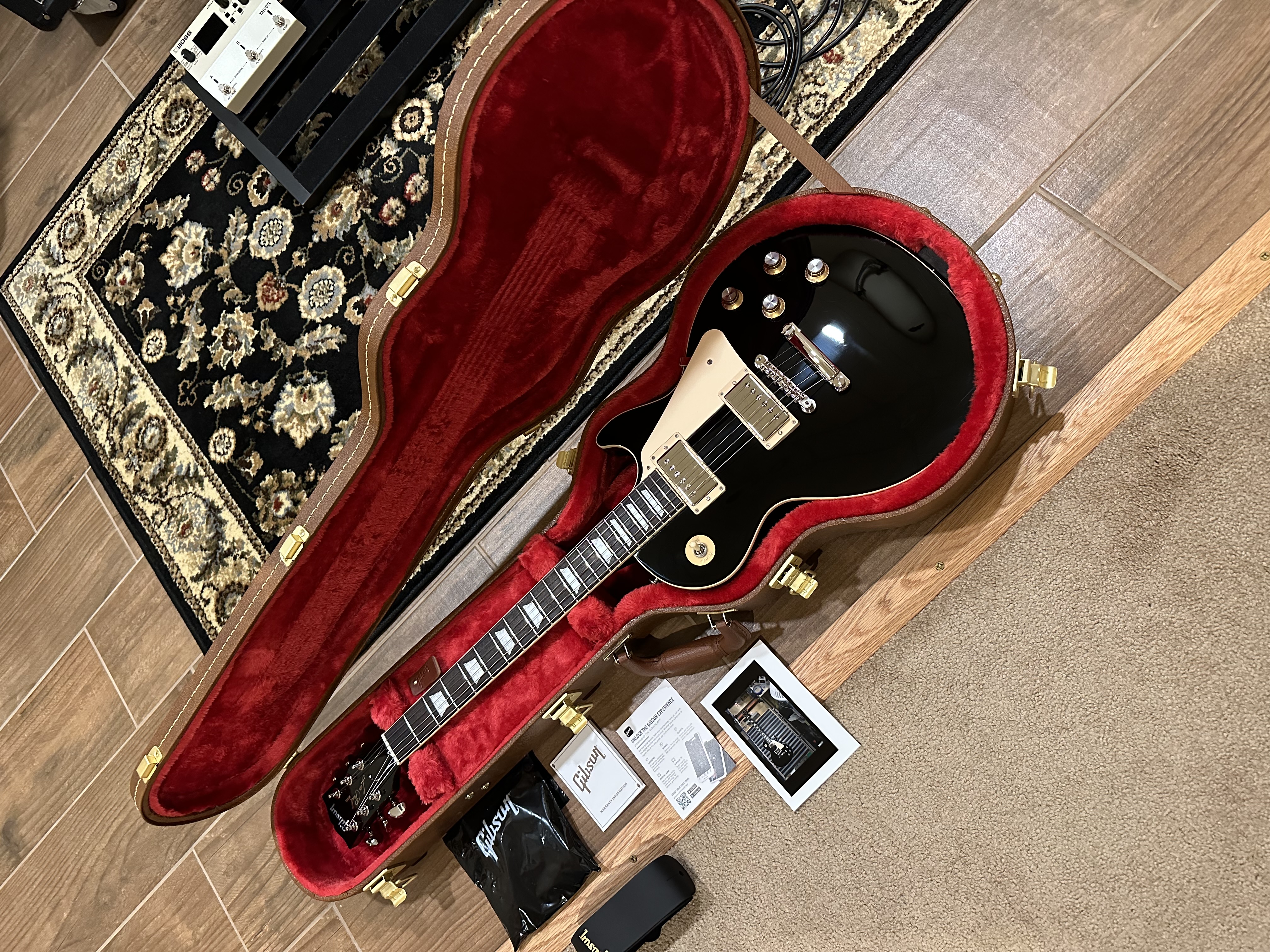 Up for sale is my Gibson LP Standard. It’s has very little playing time on it. Only a few months old. Weights in at 9.9 ounces. These come direct from the Gibson factory. 60’s neck. Has a super nice dark rosewood board. Has a very small clear coat check by the nut. Pic is attached . It is all I can find in it. Other than that no dings. $1650.00 PayPal shipped.