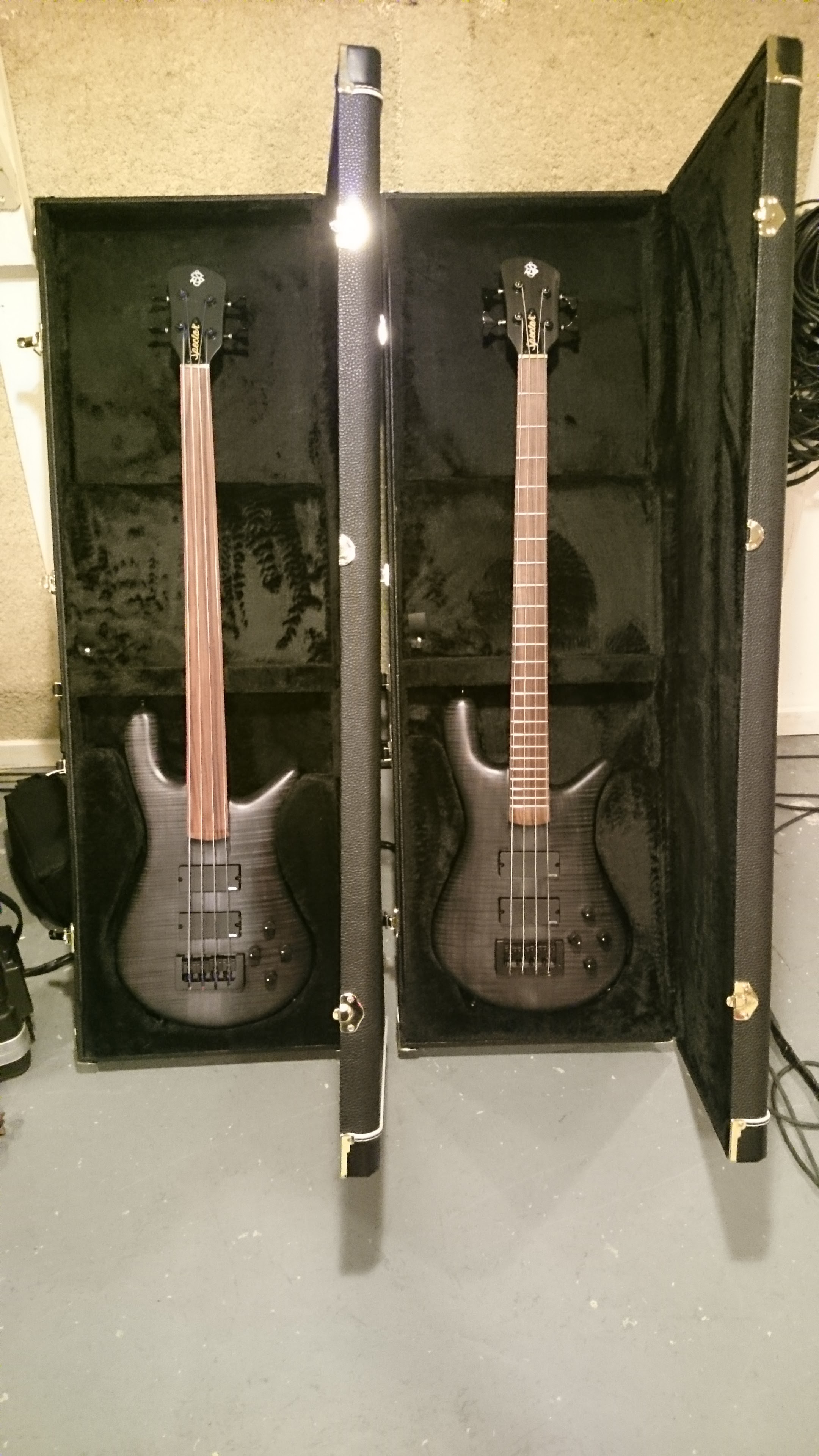 My oldest, a '72 Ibanez copy of the '71 Jazz Bass. Did my first-ever guitar mods to it back in the 70s: pickups from DiMarzio and Hi-A (now called Bartolini), and added a Leo Kwan Badass bridge. Weighs 12 lbs even and sounds massive. Used it on a number of records, back when records were vinyl. Too heavy for me to play live anymore but I still record with it sometimes.