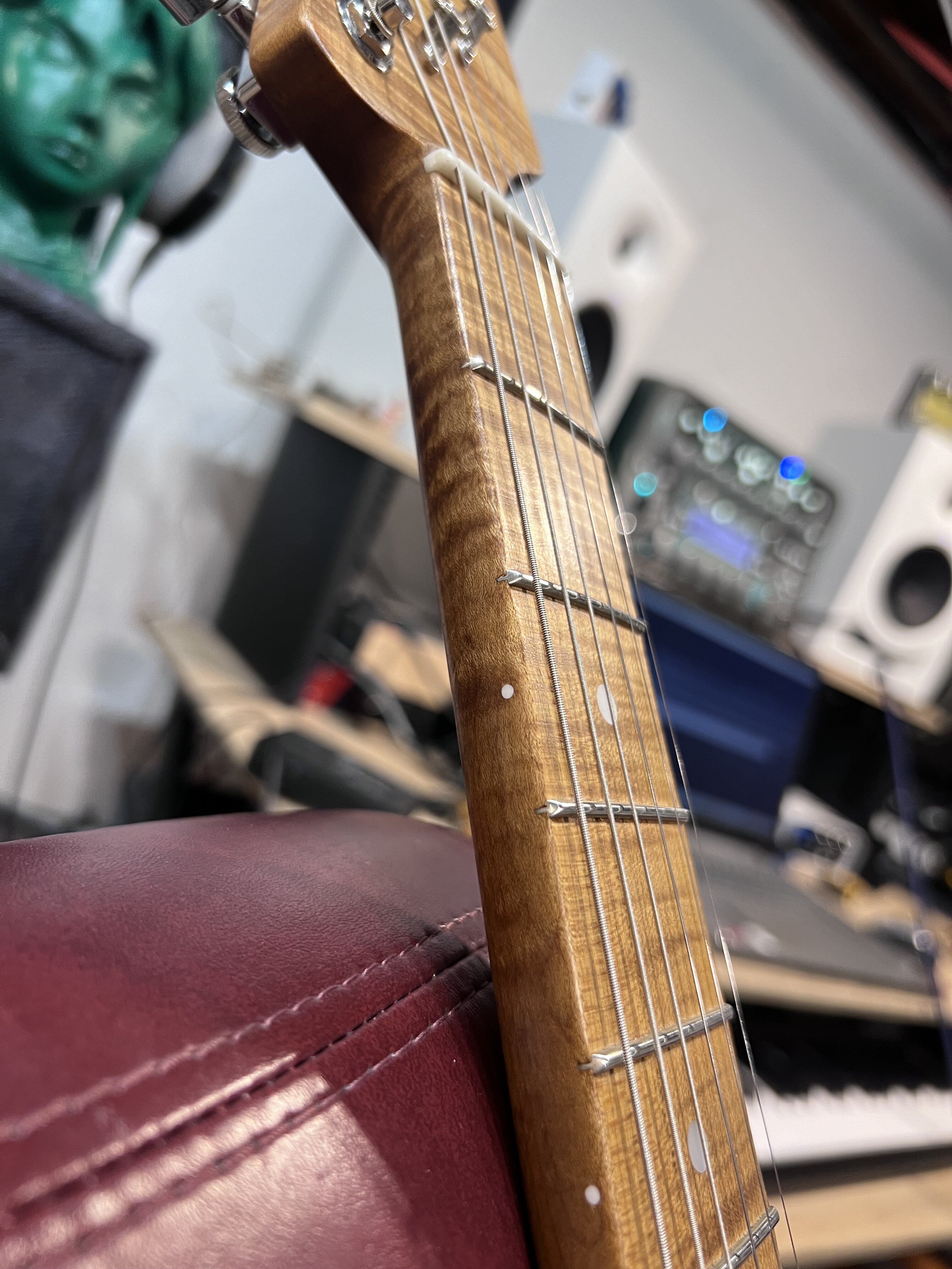 The neck is probably the nicest neck I’ve ever played. One piece roasted maple from Musikraft. At the time I couldn’t believe I spent like $500 on a random used neck on reverb, but it was covid lockdowns, I was stir crazy and it ended up being worth every penny lol.