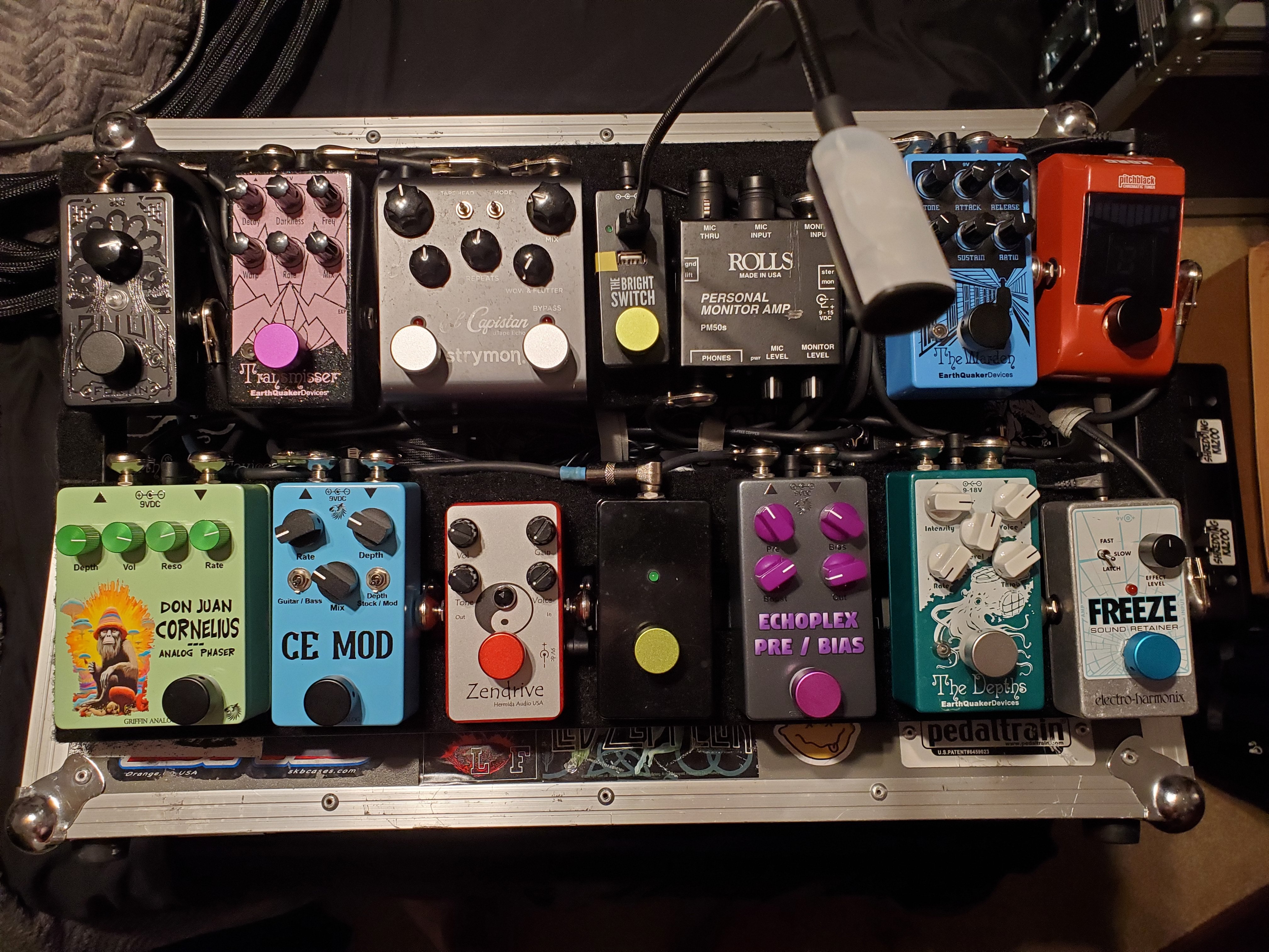 The Echoplex Pre is my always on boost. It kicked the MXR Booster Mini off of my board. I thought I wanted to save space and have the mini pedal there, but with the jacks on the side it ended up taking up the same amount of space.I forgot I built you a Echoplex Pre .... the purple pops on that matte dark grey ! thats a really great boost