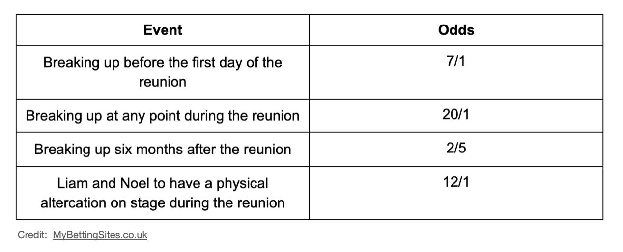 I wish I could get at least 4/1 on "Liam walks offstage at any point due to anger" I don't even think they are crazy enough to cancel the tour halfway through...they'd be on the hook to lose a literal fortune. One has to think they at least have their shit together A LITTLE BIT more now but I have been proven wrong time and time again