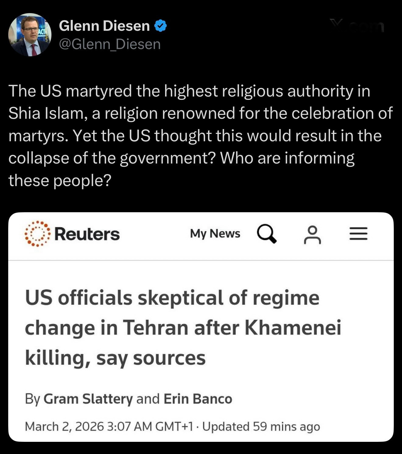 The only way I see it happening is by arming the fuck out of the Iranian resistance after decimating the IRG, which they are currently attempting to do.How exactly do you think that would happen without sending an army in?