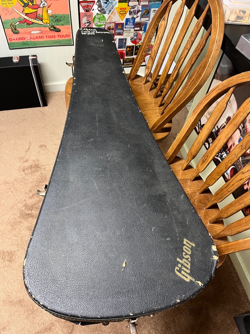 He still has the original Gibson case which has seen better days from years of gigging.