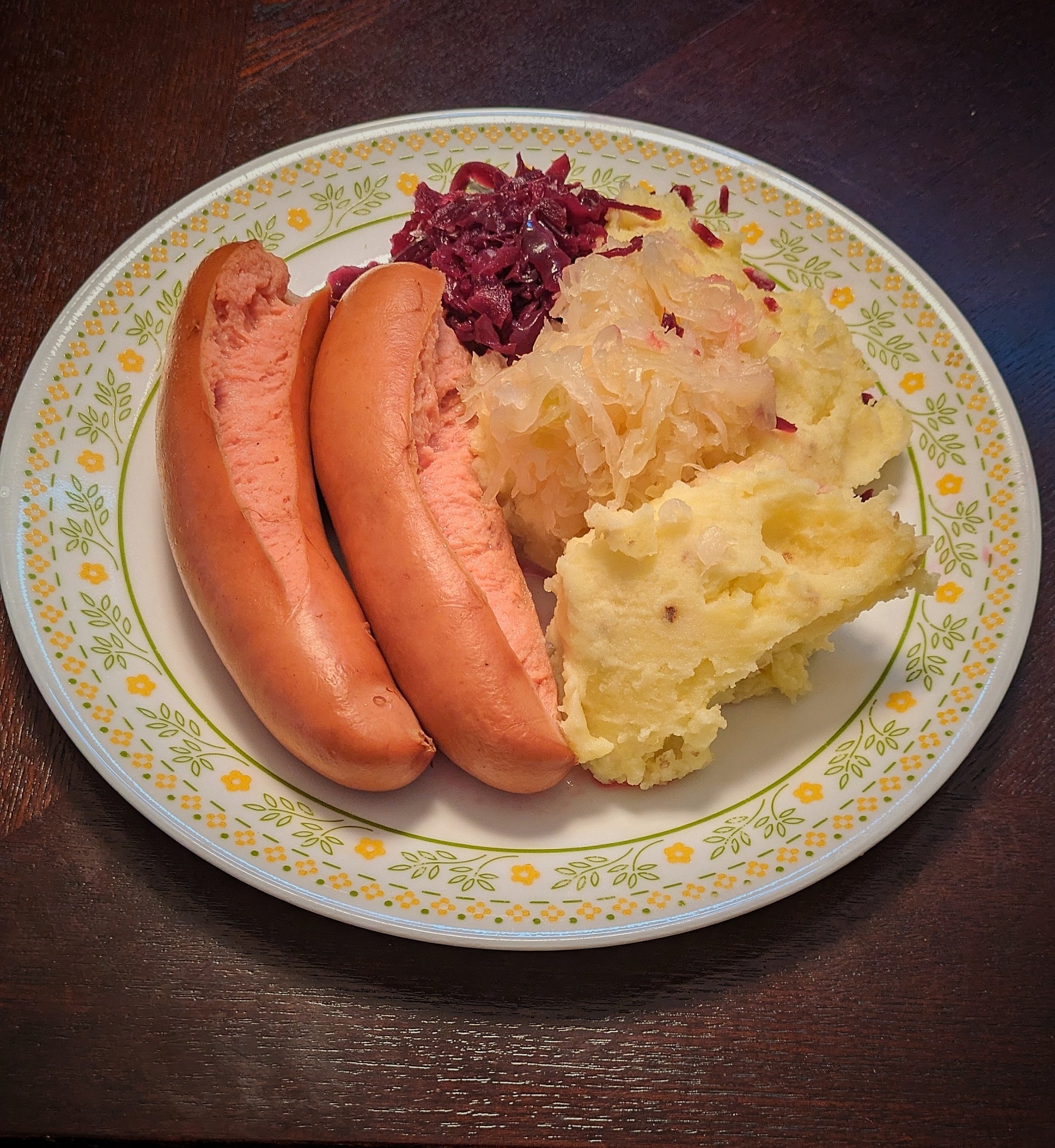 The other night was mine and I did pork steaks with Weber Kickin' Chicken spice rub, squaw corn in a can, and mashed potatoes (instant) but added cheddar-parmesan cheese on top. The picture is somewhat pre cooking. I seared the pork steaks and whipped up the mashed potatoes first. Then, everything went on the Weber at same time.