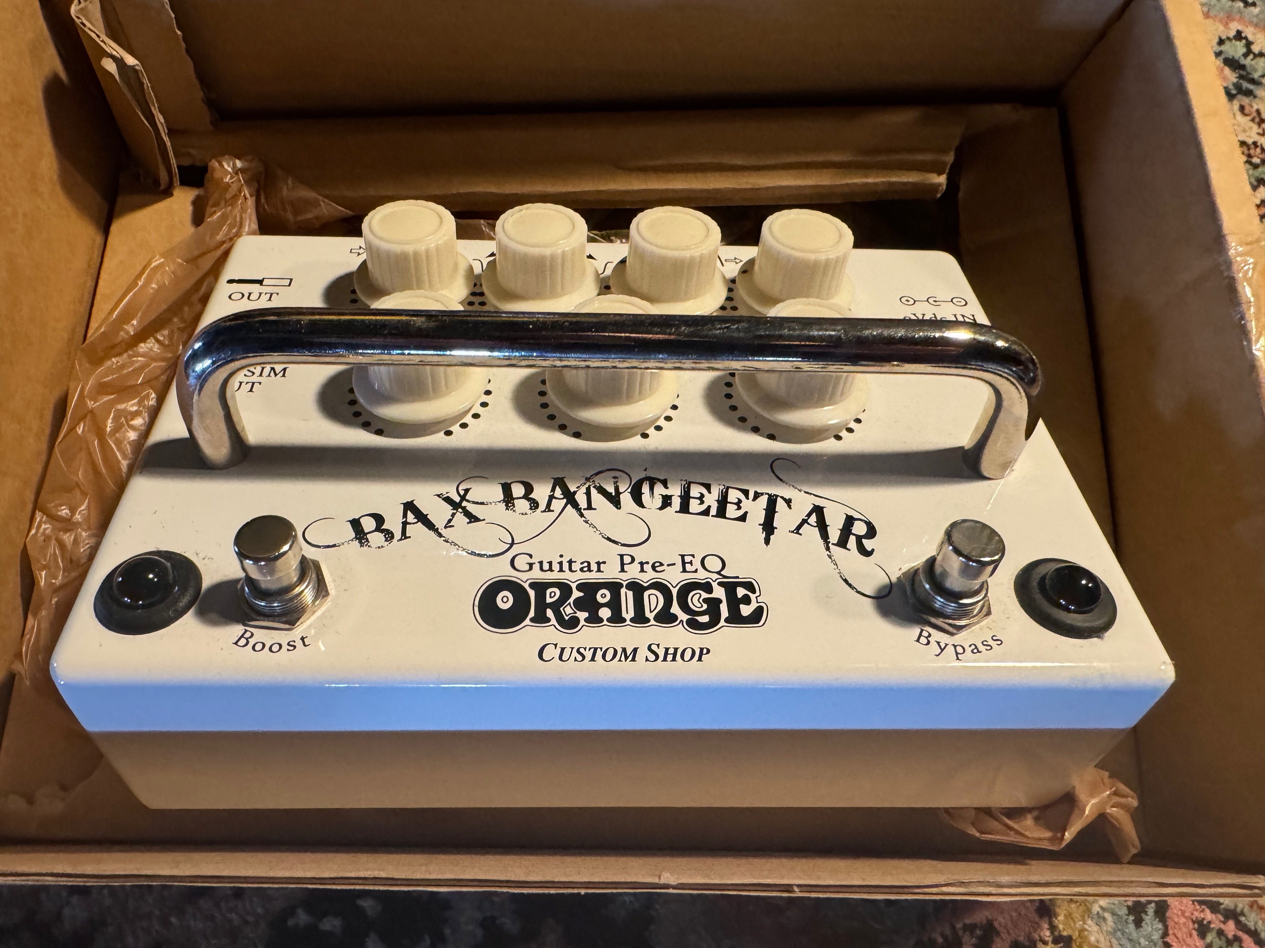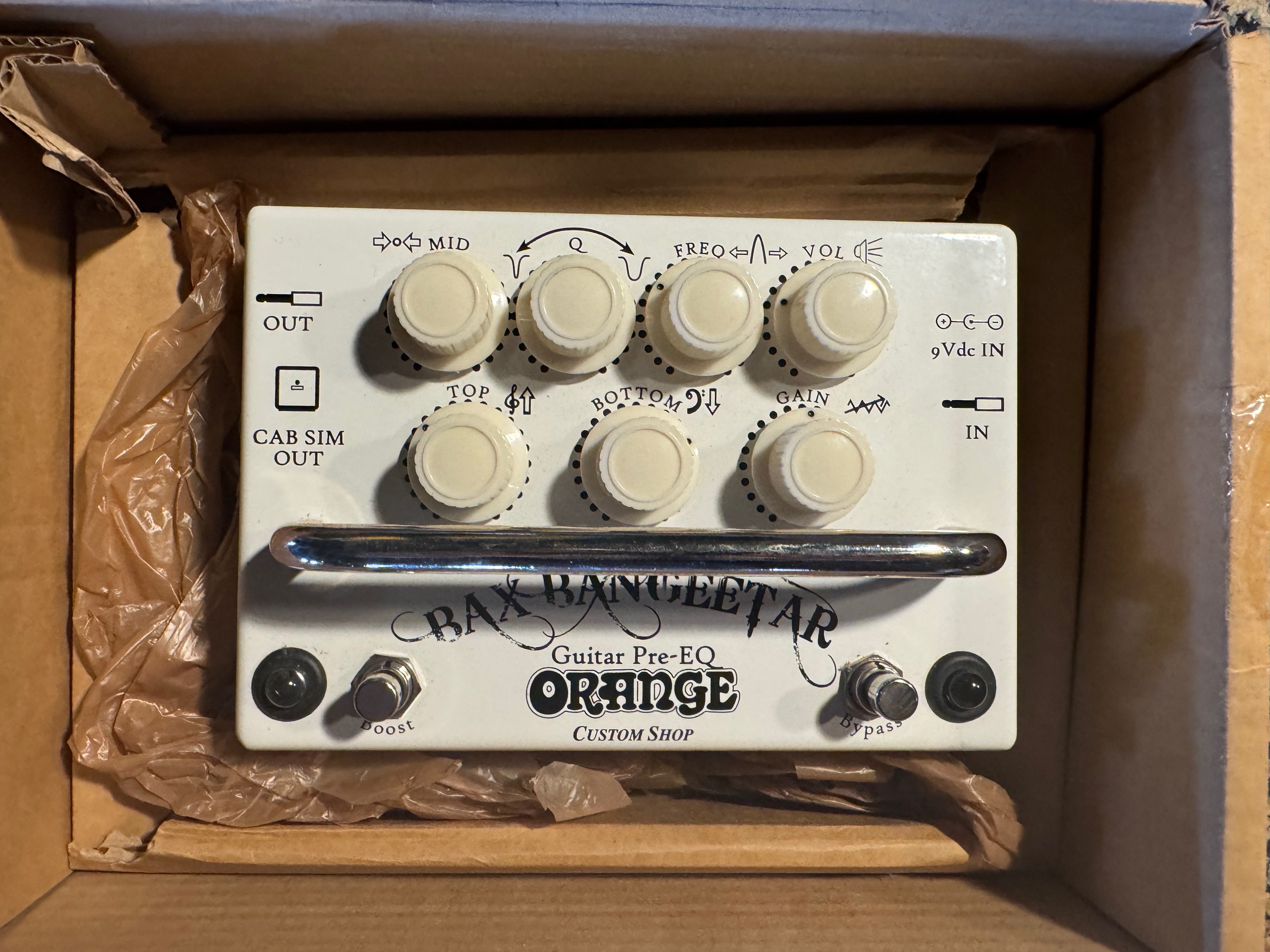 I purchased this Orange Bax Bangeetar pedal in 2023 on Reverb and have used it sparingly to achieve a specific guitar tone (e.g. Ty Tabor / King’s X). It is in mint condition and everything works as it should. I’m only selling it because I’ve just purchased a new Bogner head, so I no longer need the pedal.