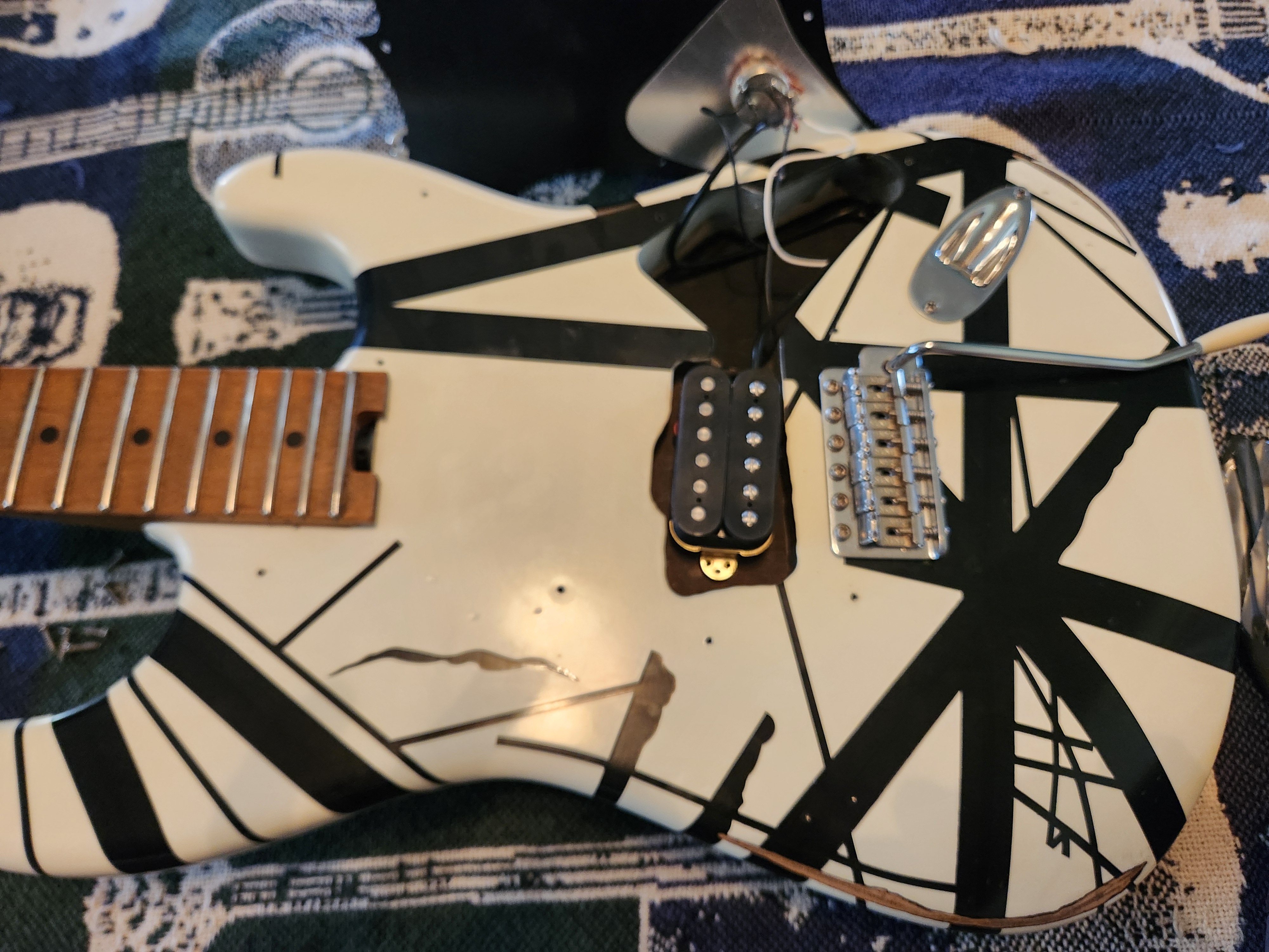 You'd need a new neck with different radius, brass nut, brass block on trem, jumbo frets, swap some electronics. I have a couple hss and they sound more stratty, less EVHy.Without the Floyd you're better off doing a pickup swap on a standard Strat, IMO.