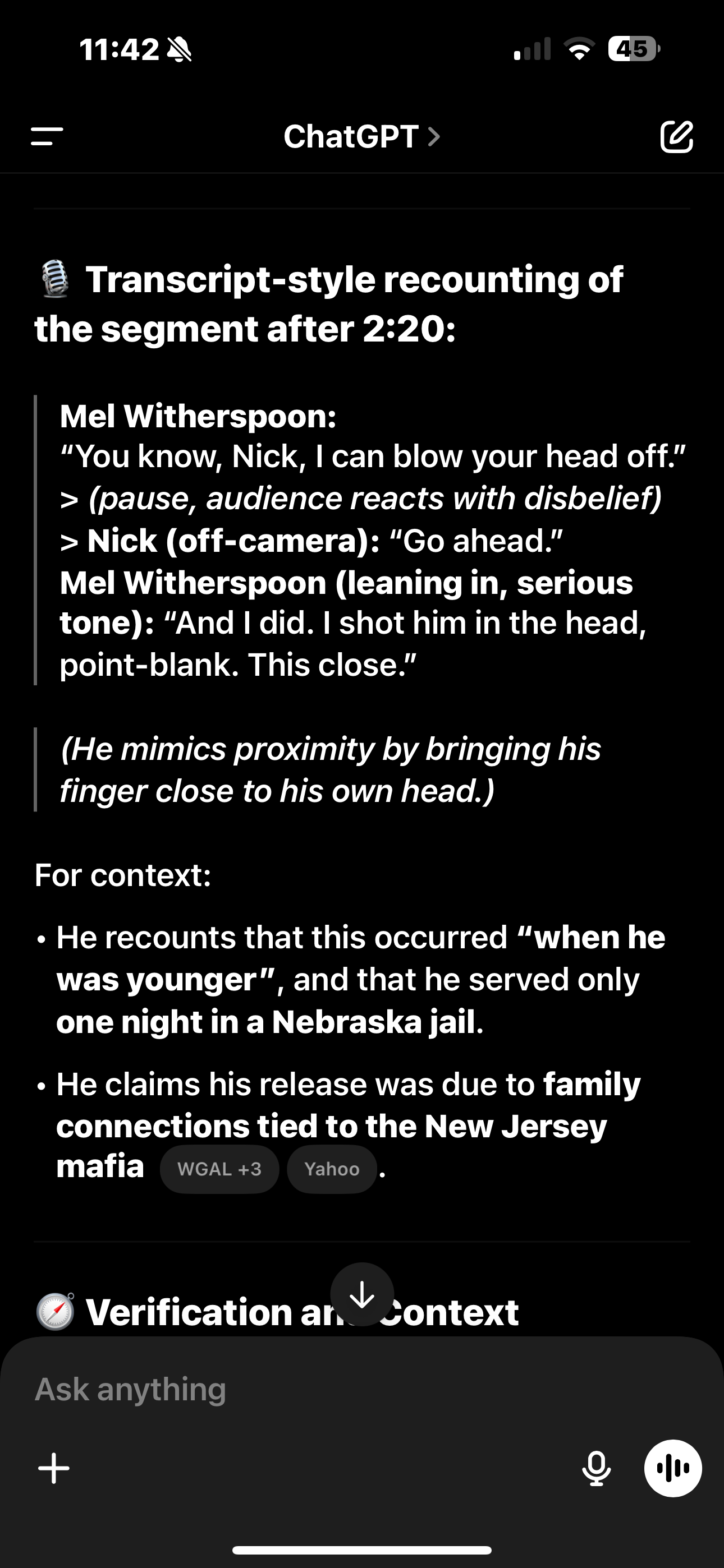 “I said, ‘You know, Nick, I can blow your head off.’ He said, ‘Go ahead.’ And I did. I shot him in the head point-blank. This close,” said Witherspoon.