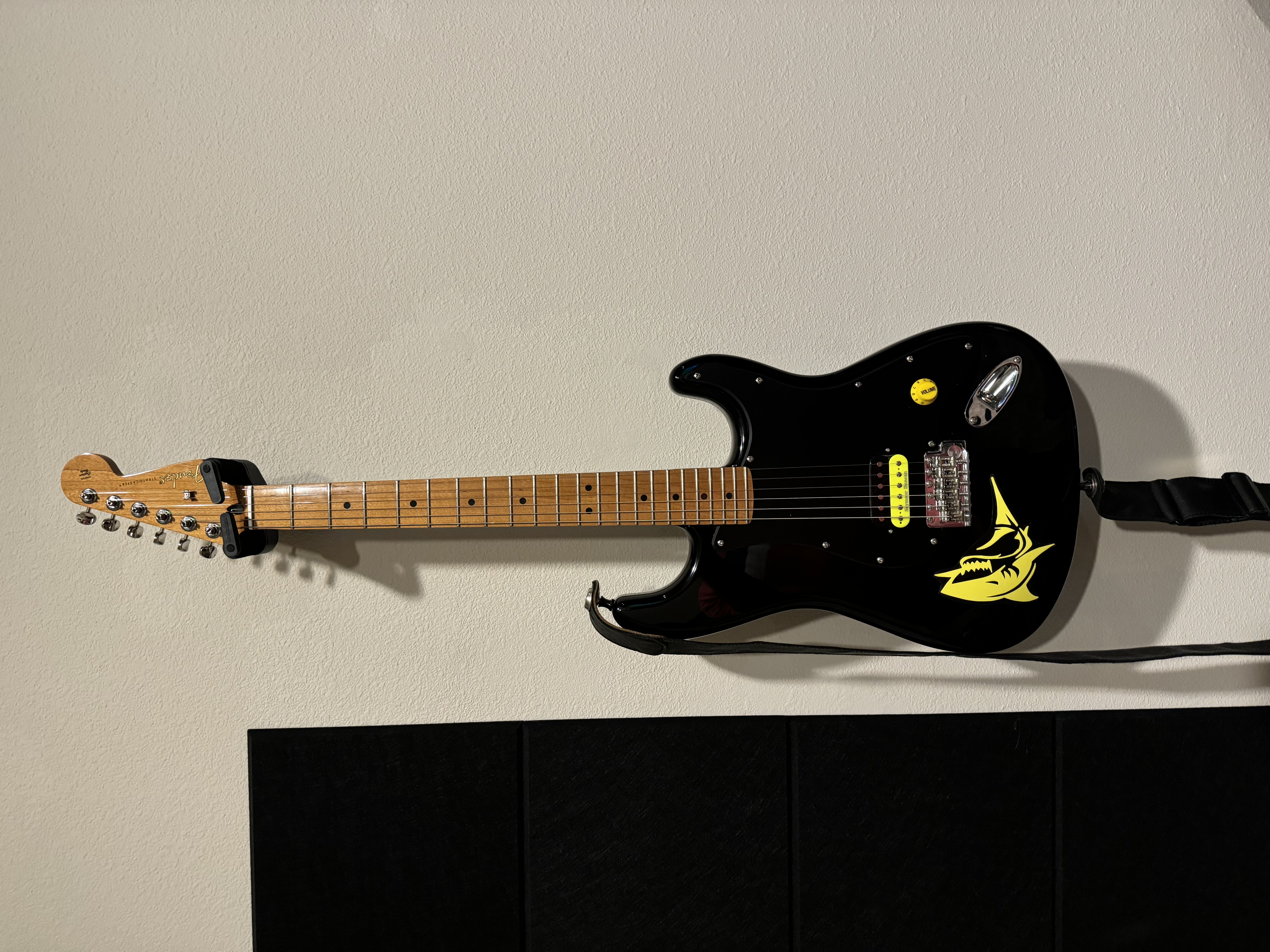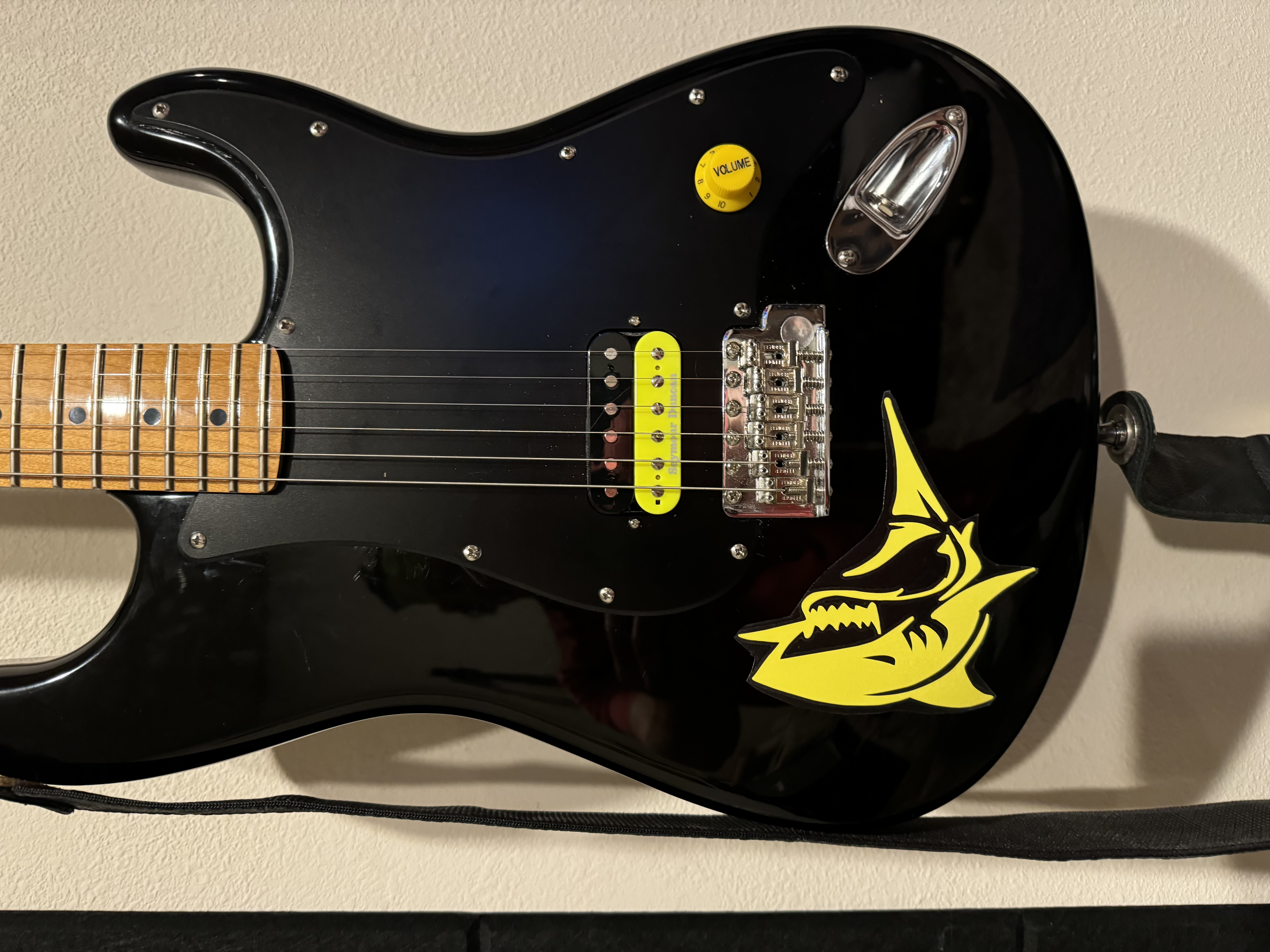 Fender American body. MIM Fender neck. Warmoth matte black guard. Duncan 78’ pup and single volume pot measuring 318k. Clamped the vintage trem down. Sounds amazing and plays like butter. View attachment 335061View attachment IMG_0061.jpeg