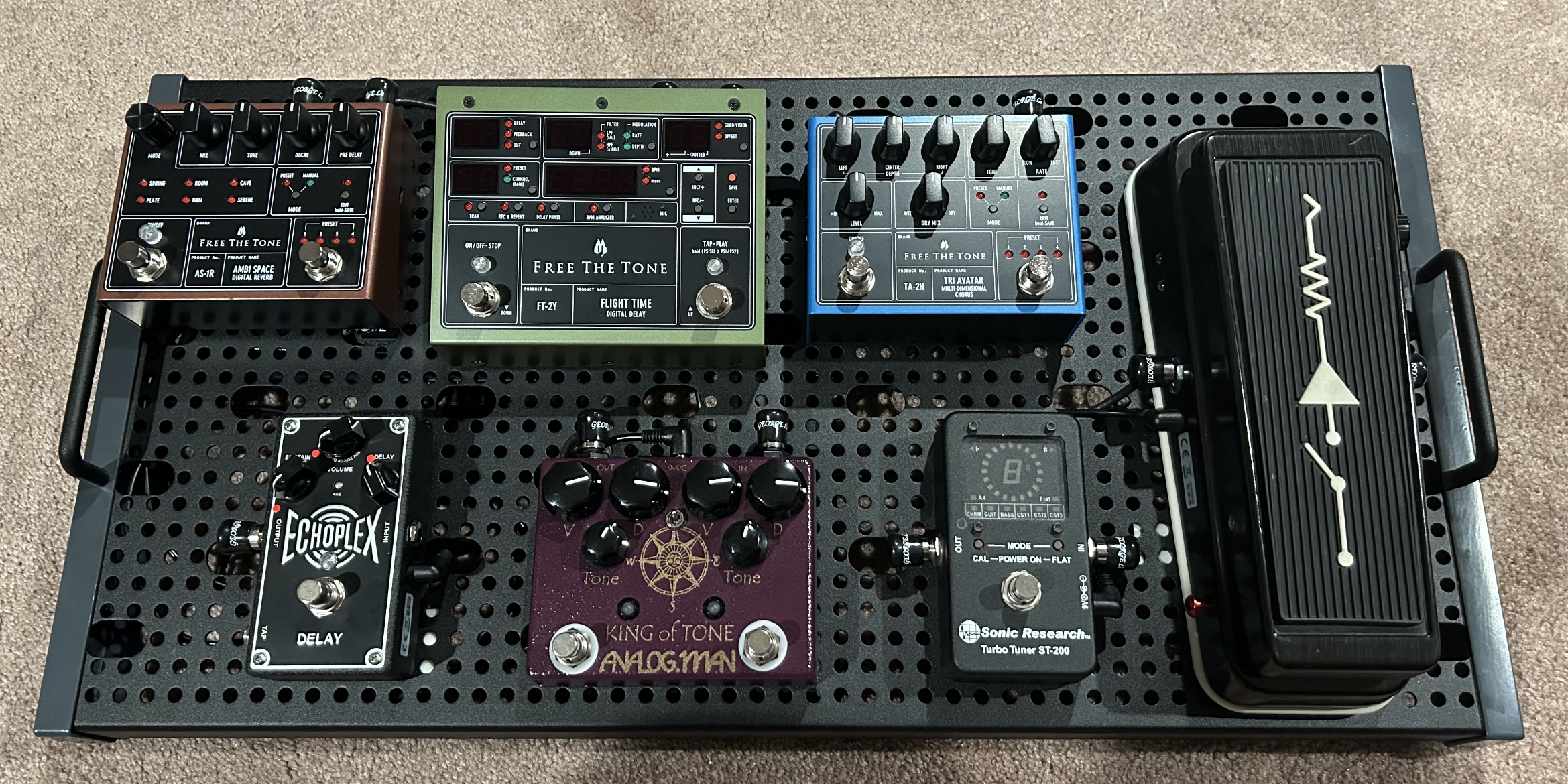 Thanks, Xact Tone does great work. I was basically trying to recreate all the effects I had in my rack on a pedalboard since I was de-racking several years ago. I also wanted the power supply under the board to give me as much space possible for pedals. It's the Truetone CS-12.man that is CLEAN!
