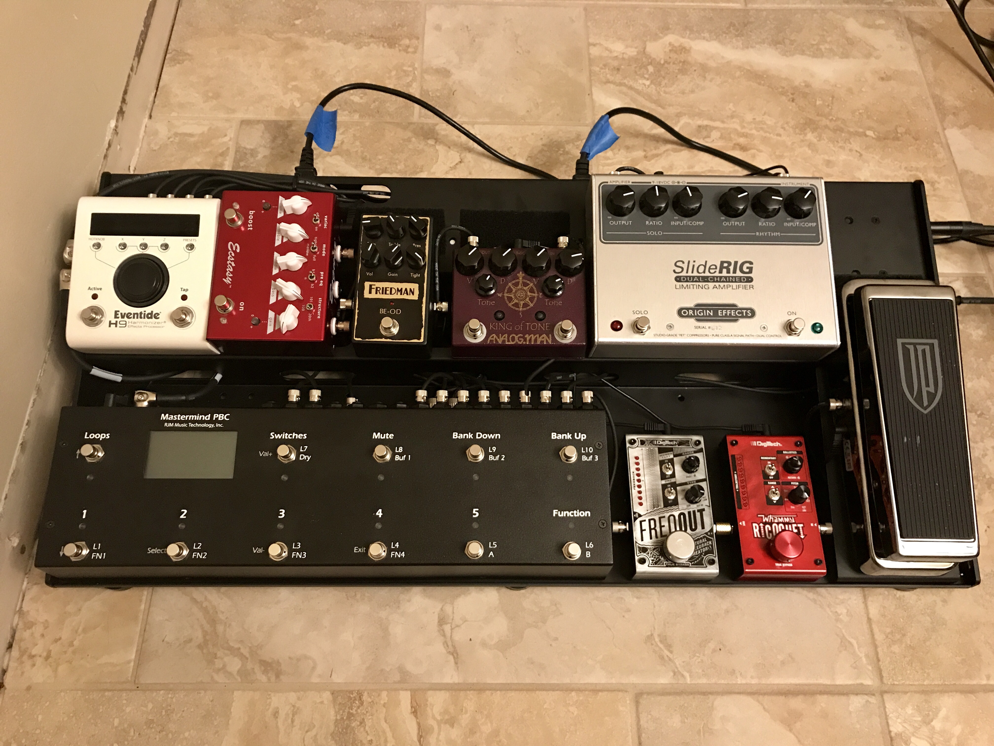 Fucking hell that is nice. There are a lot of great examples in this thread. I have a pedaltrain metro 24 and just got a Rockboard tres 3.1. Unfortunately the rockboard is smaller than I thought but I really don't have a lot of pedals. So I am going to build the rockboard with the H90, wah, boost, and noise gate and this rat clone my friend is building me. I was going to sell the pedaltrain but I'm thinking of I may just use one board for the atla and then one for my non midi based amps.A few variations, last photo is current:
