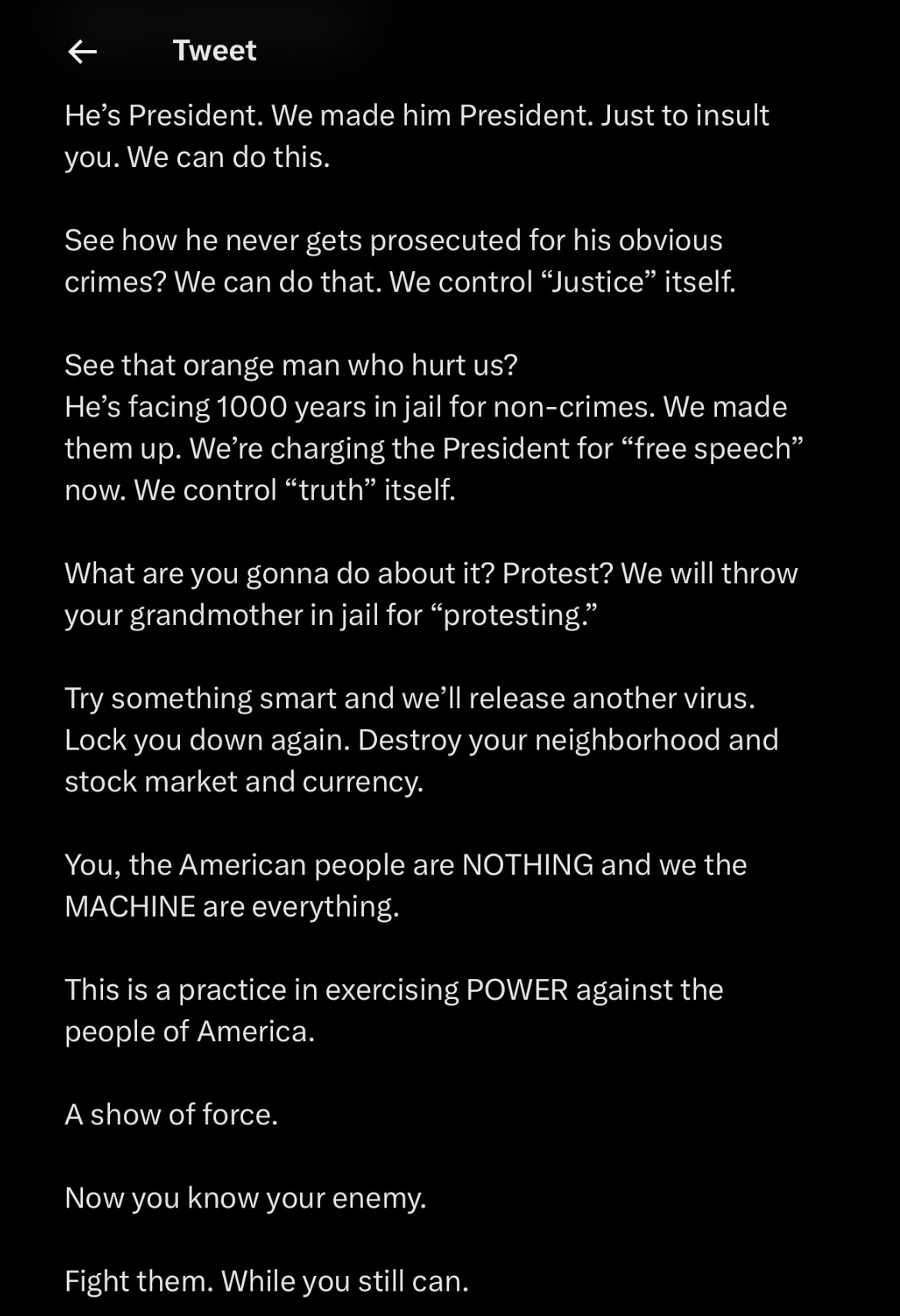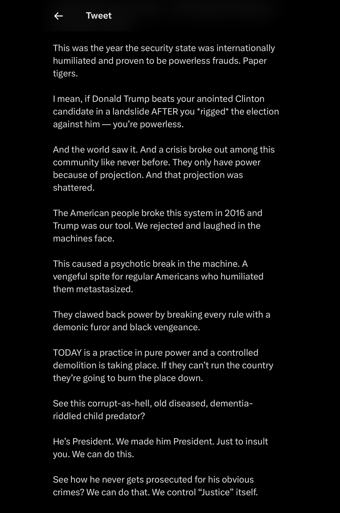 I have a serious question Dave, why is it TDS for anyone to not like Trump ? I didn’t like him before he was President, much less after. A lot of you guys have been droning on about Bill Clinton, Hillary Clinton, Obama, Joe Biden, Hunter Biden, Kamala Harris, Michelle Obama, e-mails, Benghazi, the laptop, Ukraine, Covid 19 jabs, Q annon, the election, etc ad nauseum, so is that DDS (Democrat Derangement Syndrome) ? Because it sure sounds like it… anyone that doesn’t like Trump is only focused on one part of the Republican Party, YOU guys are deranged about EVERYTHING. Who’s more deranged about more things here ?The liberal fear is so delicious. Mmmmm, tastes good.