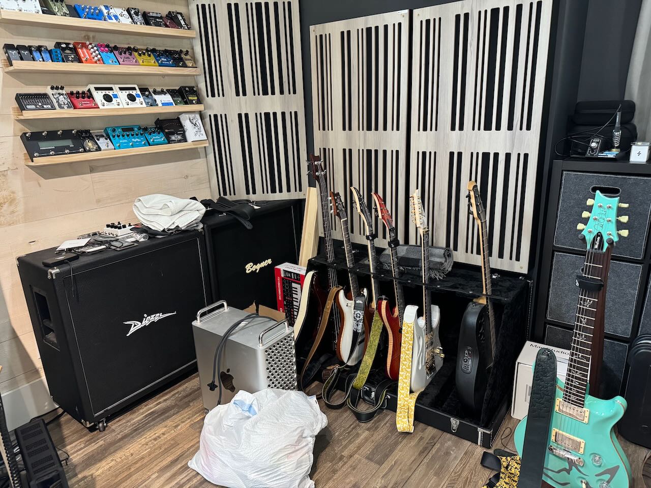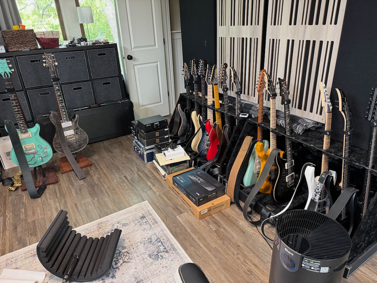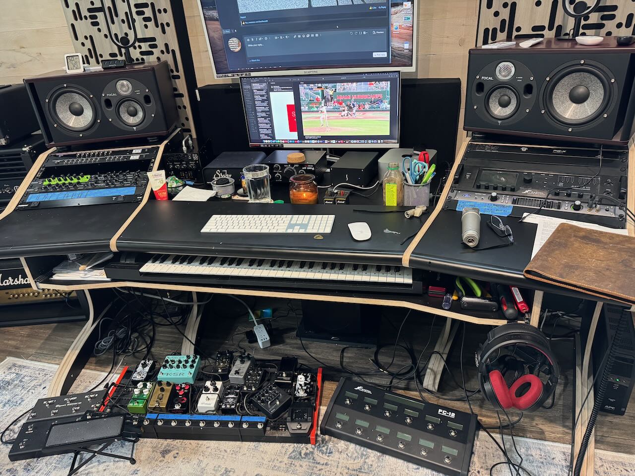 Simple and elegant. I've been thinking of building something similar.There are other “rigs” in storage, but this is what is currently available in Madison Spare Bedroom. What’s not visible on the other side of the room is the recording desk with a couple of Eleven Rack’s , some interfaces and the Pro Tools DAW…