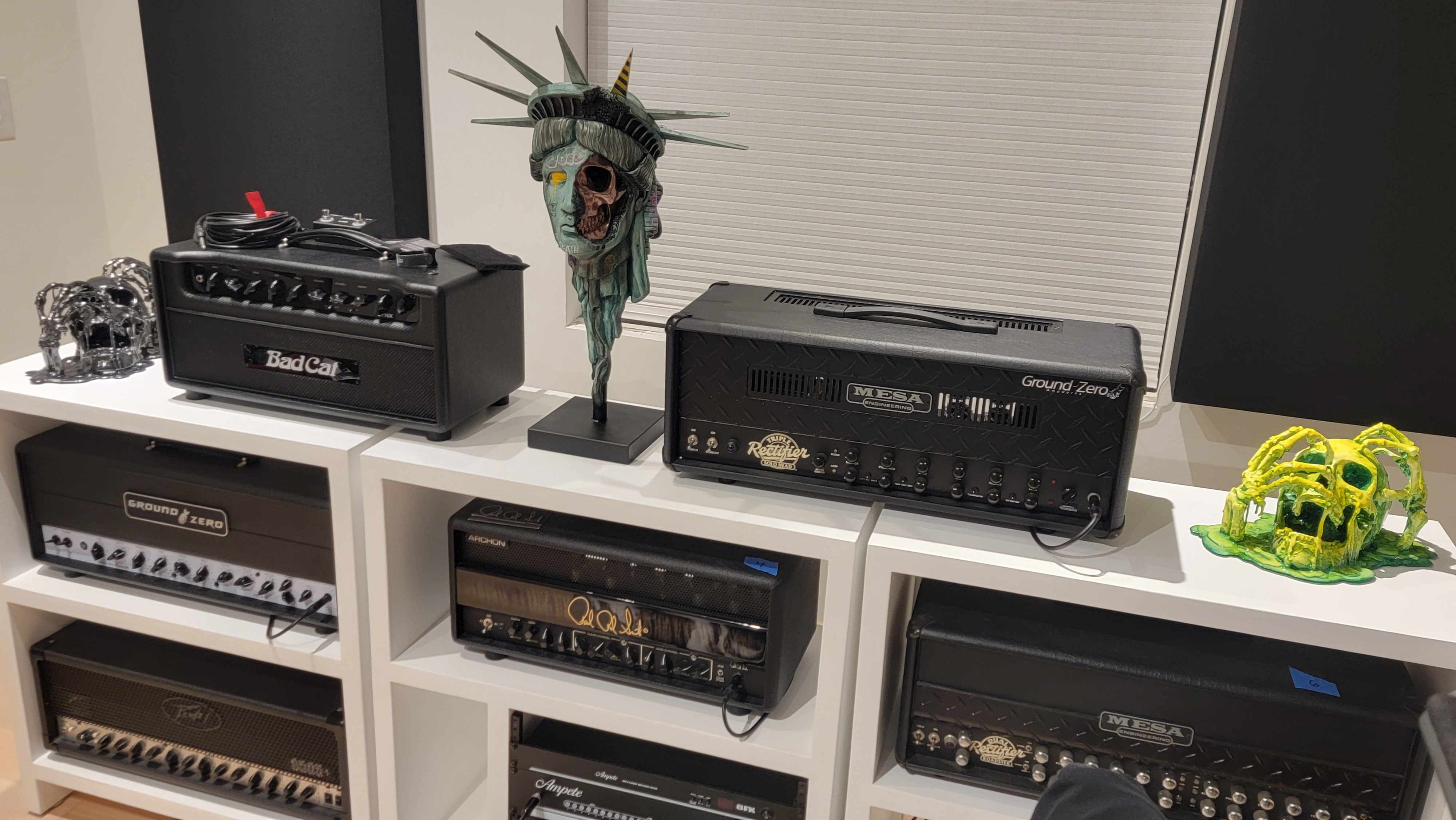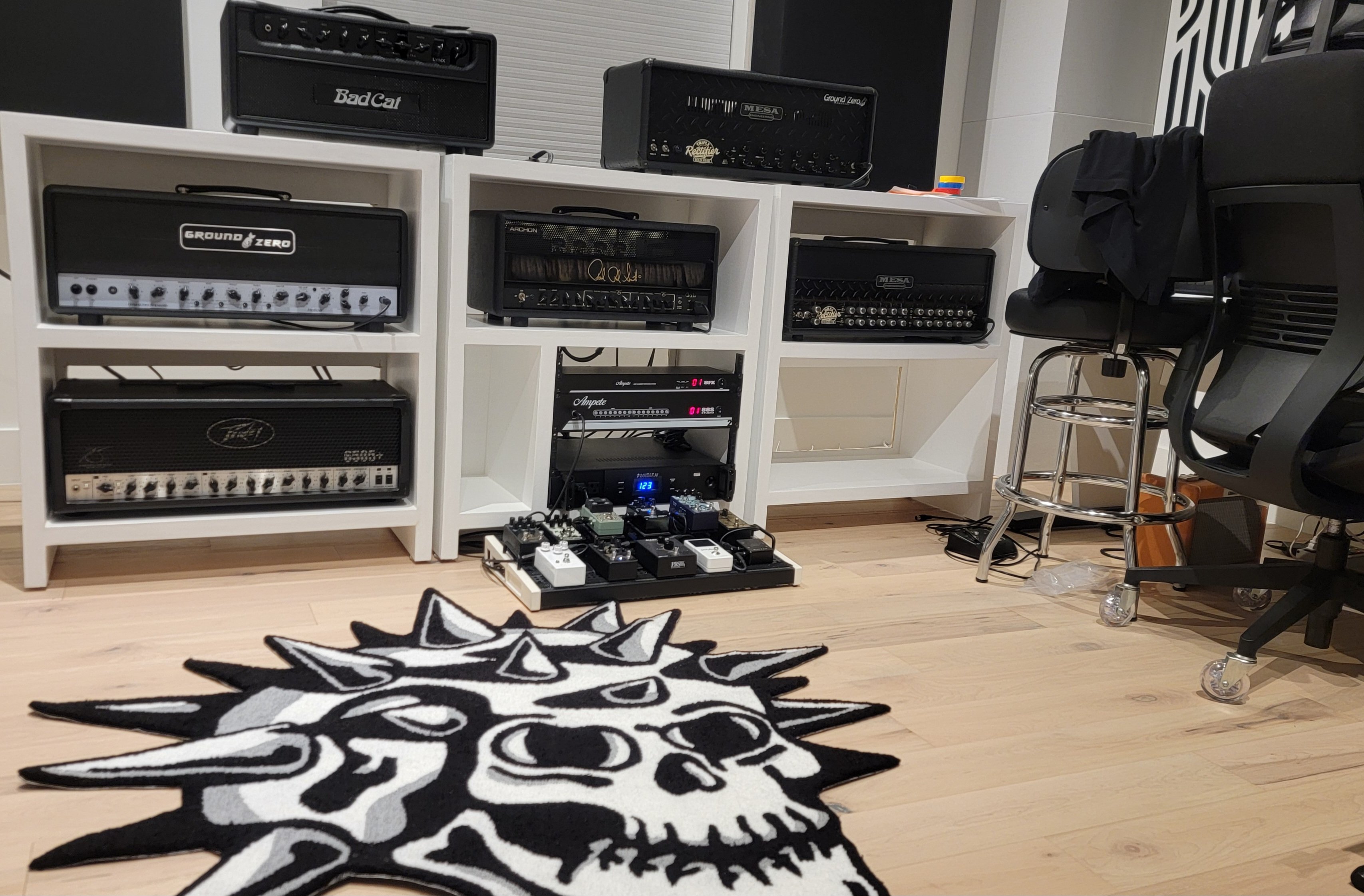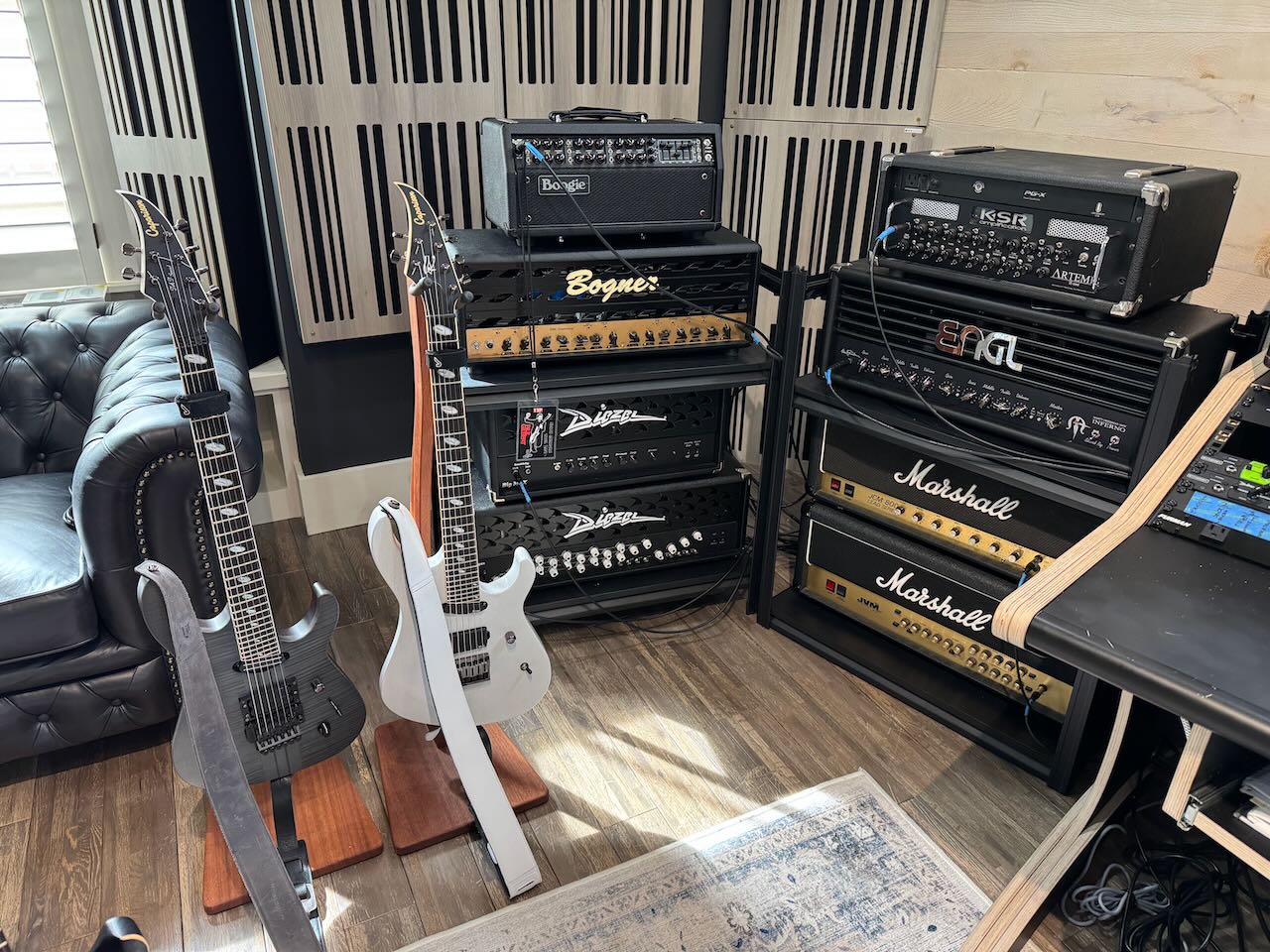Simple and elegant. I've been thinking of building something similar.There are other “rigs” in storage, but this is what is currently available in Madison Spare Bedroom. What’s not visible on the other side of the room is the recording desk with a couple of Eleven Rack’s , some interfaces and the Pro Tools DAW…