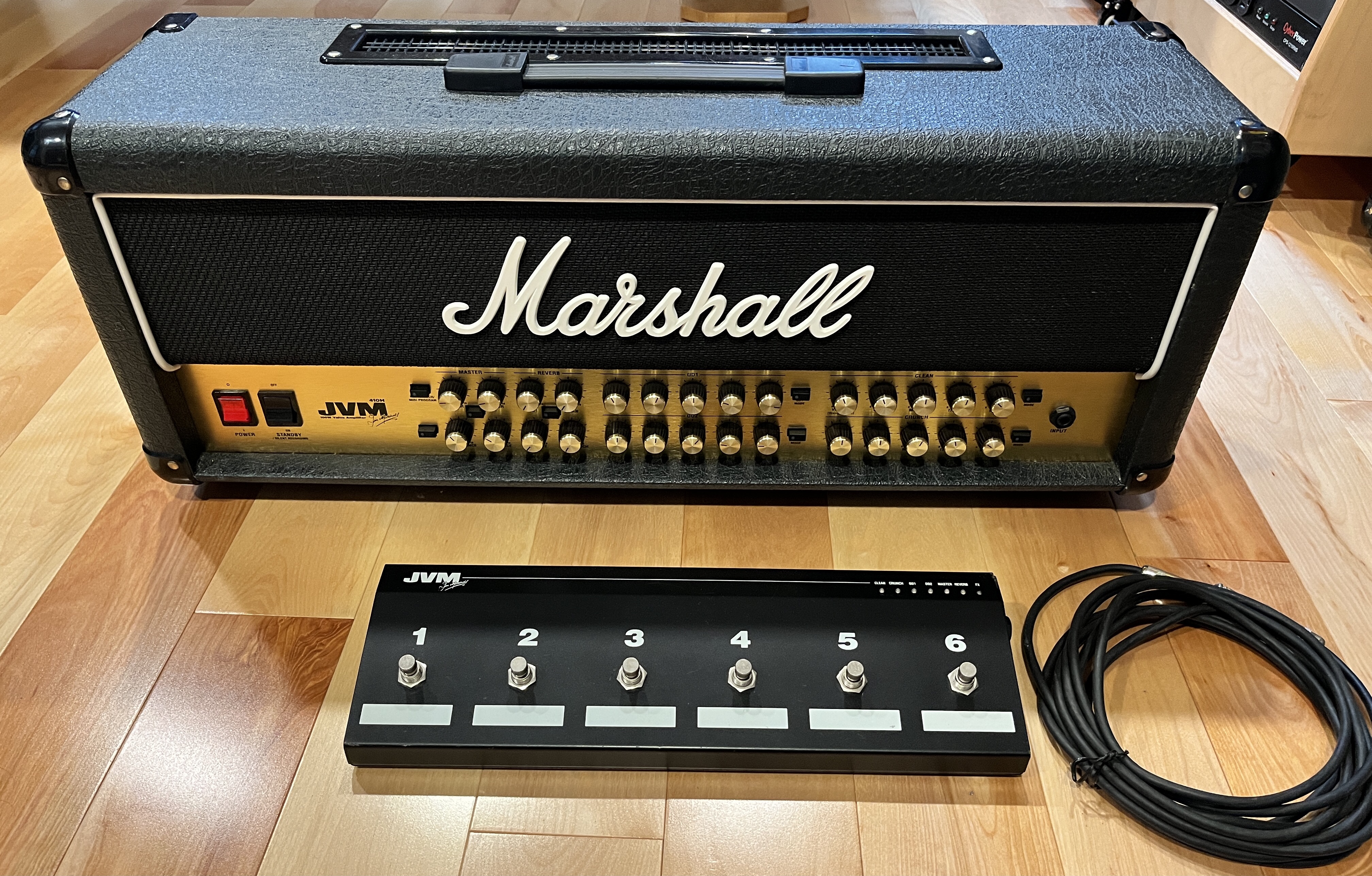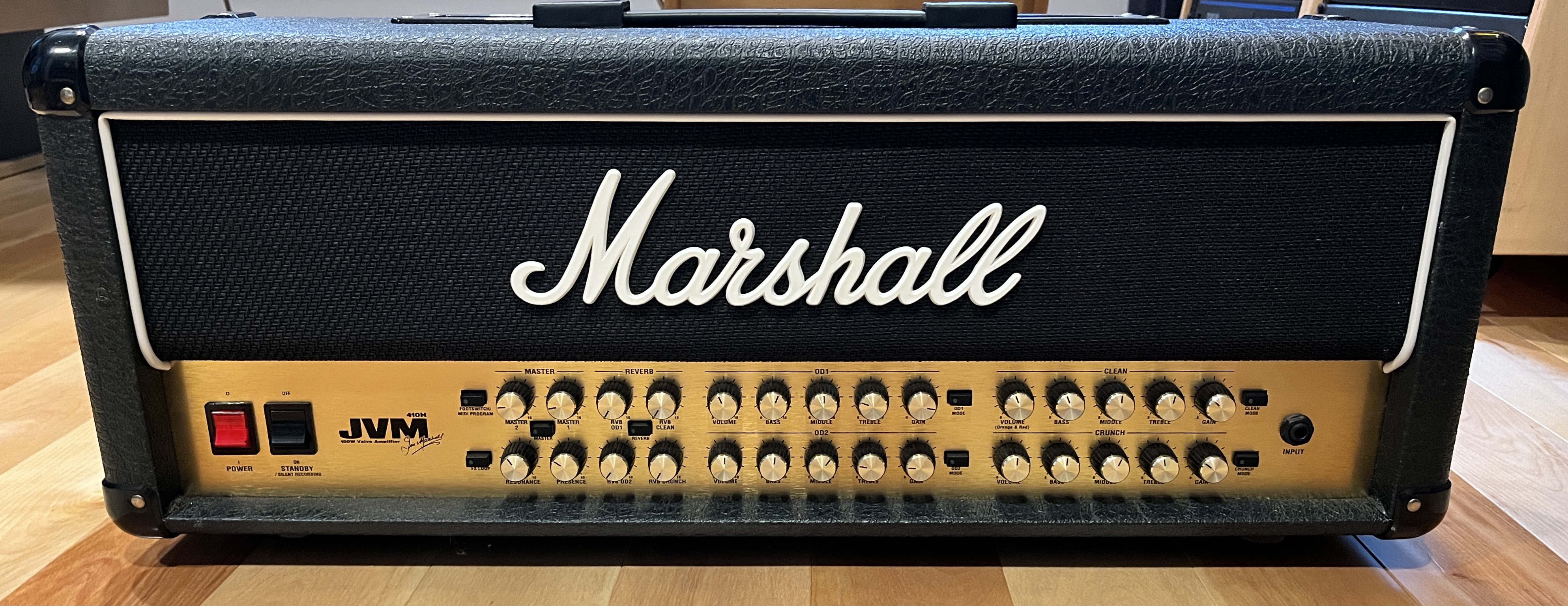 Very nice Marshall JVM410H in great shape. Loaded with all the options, from crystal cleans to mid gain plexi and modern high gain tones. This amp covers it all and very versatile. Was re-tubed with Svetlanas and sounds awesome! I will split the shipping cost. Will consider trades for Gibson Explorer or V. Fractal FM9 or FM3 +/- cash. See my other listing on a mint EVH 5150 4X12 if you need one.