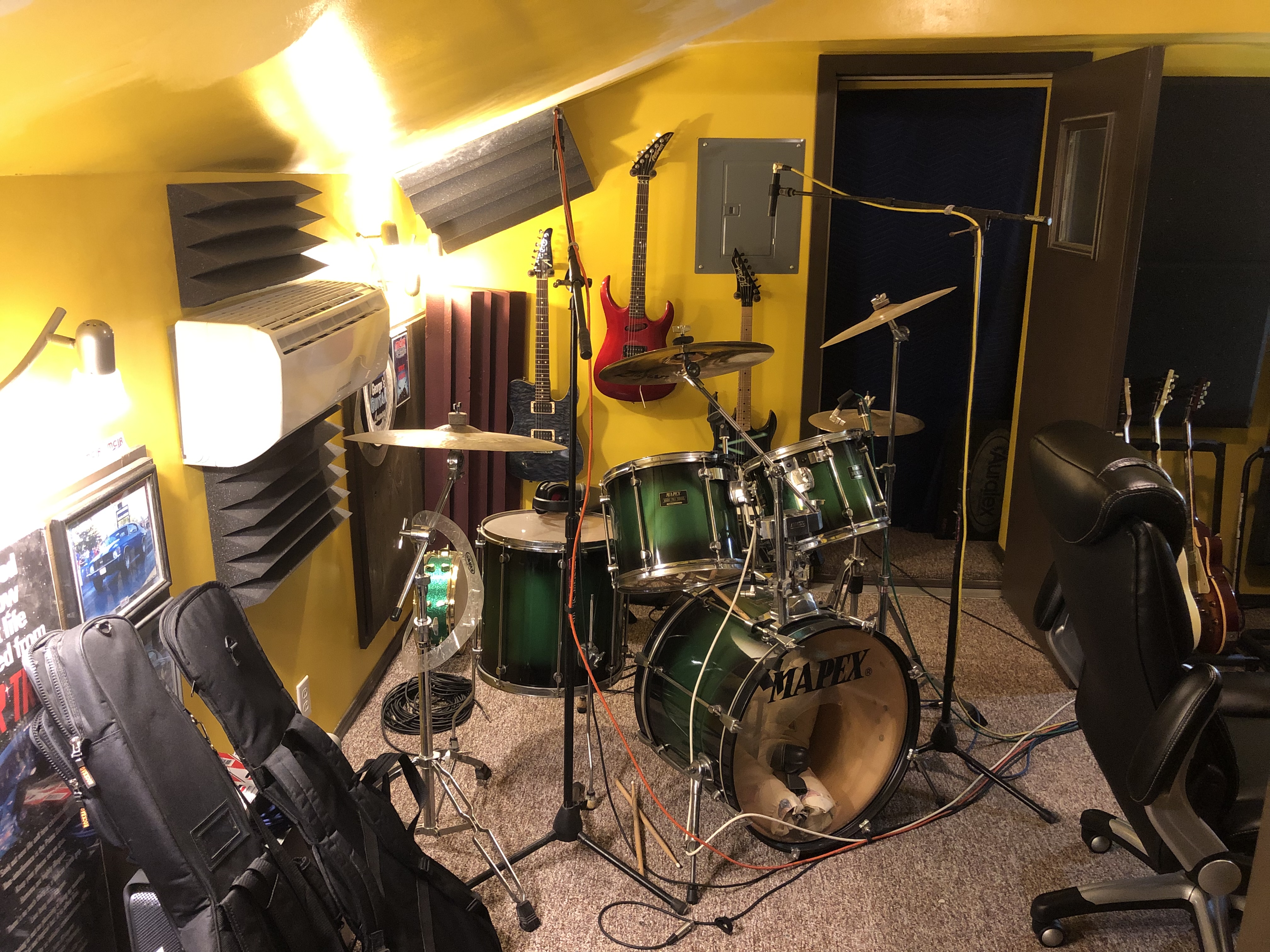 Had a customer come in wanting to sell it. Always liked the Mapex stuff and this being maple thought it would be good to have. I get my drummer’s hand me down heads (he changes them all the time). He is good at tuning so it sounds really good and the room records pretty well too.Dude that Mapex kit is INSANE!?