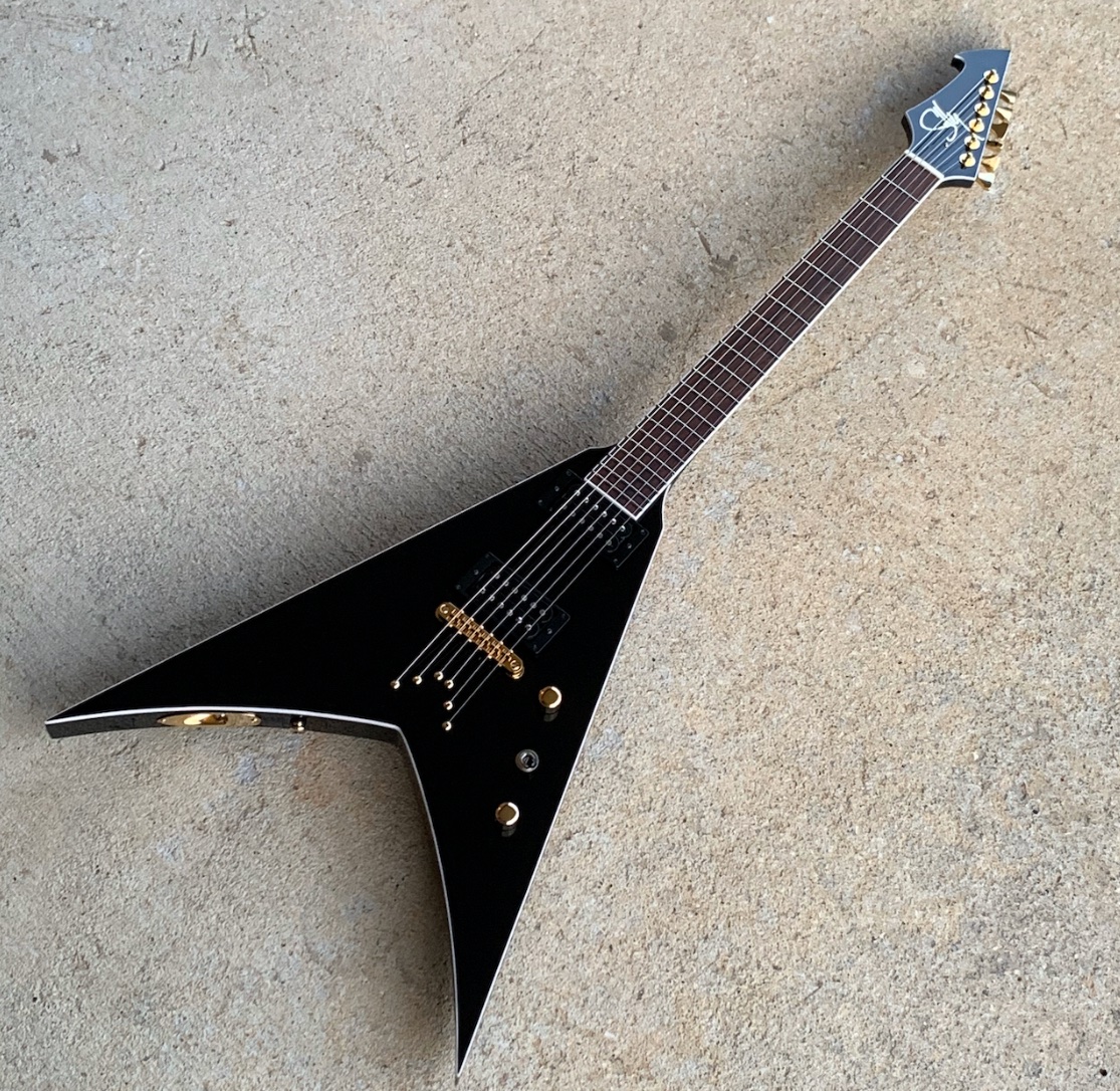 Sully guitars…Who is the maker of the black V? Bound body AND neck and GOLD HARDWARE!
