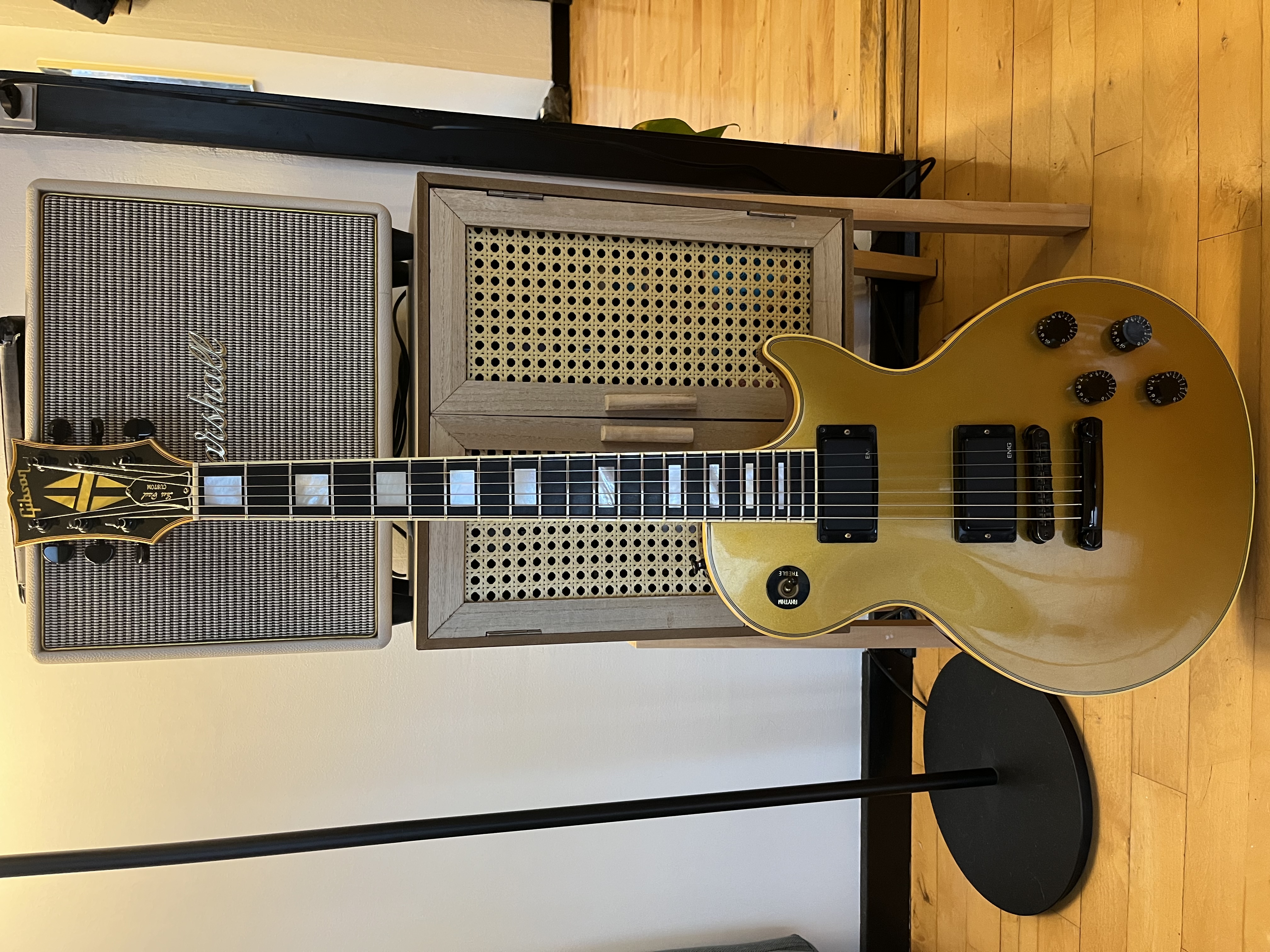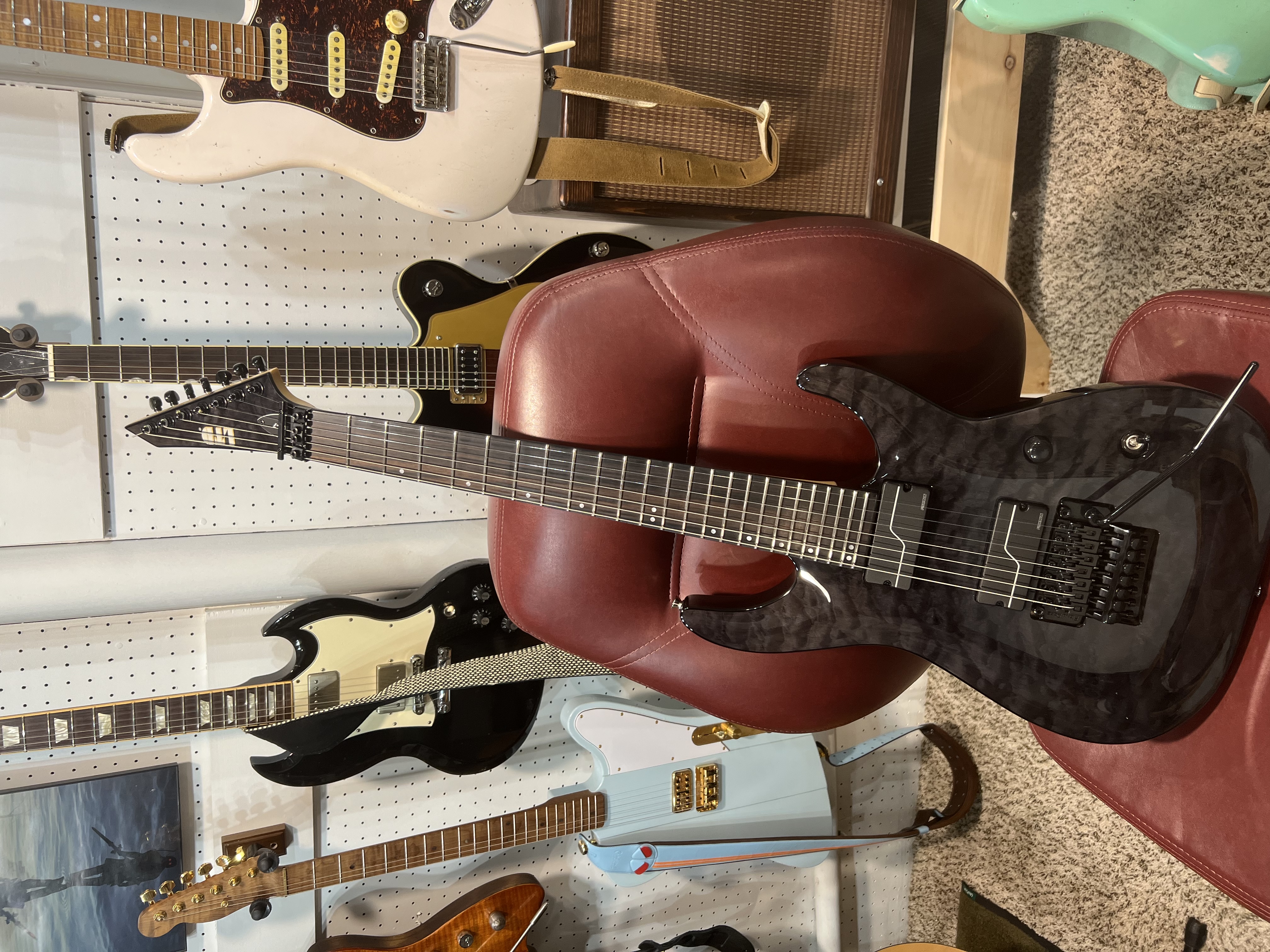 Your mom's basement is carpeted ?ESP LTD Buz McGrath model. Feels and plays great. Not totally sold on the fishmans though.