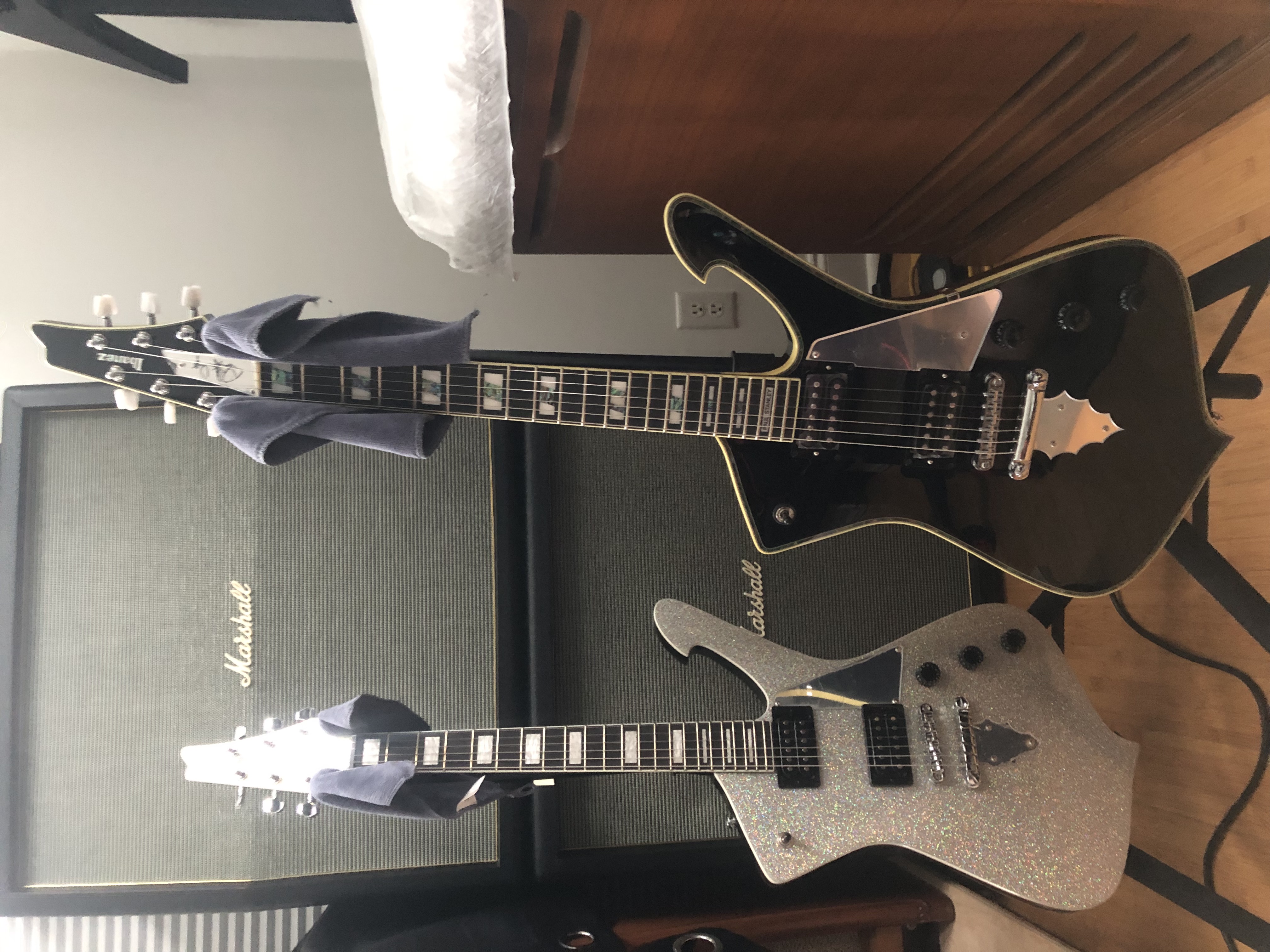 That Orville is smoking.Posted these a few times already but I got them both in the same week. Orville now has a zebra Aldrich in the bridge and the Edwards now has the Wylde EMG set.