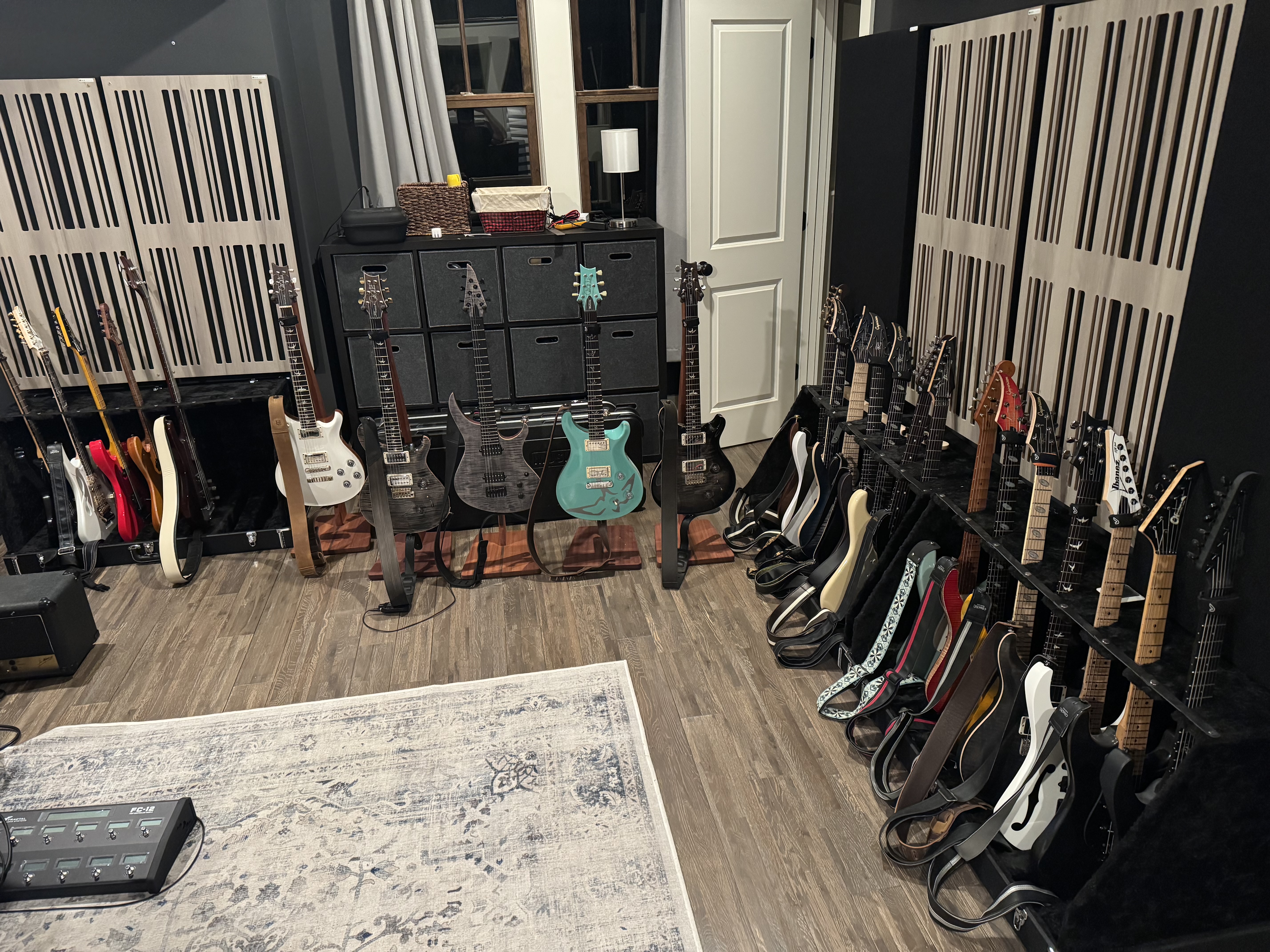 How shite dude I'm not sure if I'm more impressed with the guitar collection or the rack(s). Custom rack build I'm assuming. Nice![]()