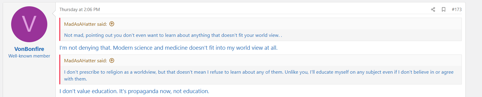 100 percent. Add this to your screenshots: I went through the 3rd grade and everything I ever needed to do the things I want to do was something I had a grasp of by then. Reading, writing, basic arithmetic. For the pathway I ultimately chose every single hour spent in a classroom after 3rd grade was a complete and total waste of time. If a person can read and can think for themselves, all the worldly knowledge you want is down at your local library and for me my local monastery for things eternal. And those eternal things are greater than some guy shouting about the shape of a planet to my mind.