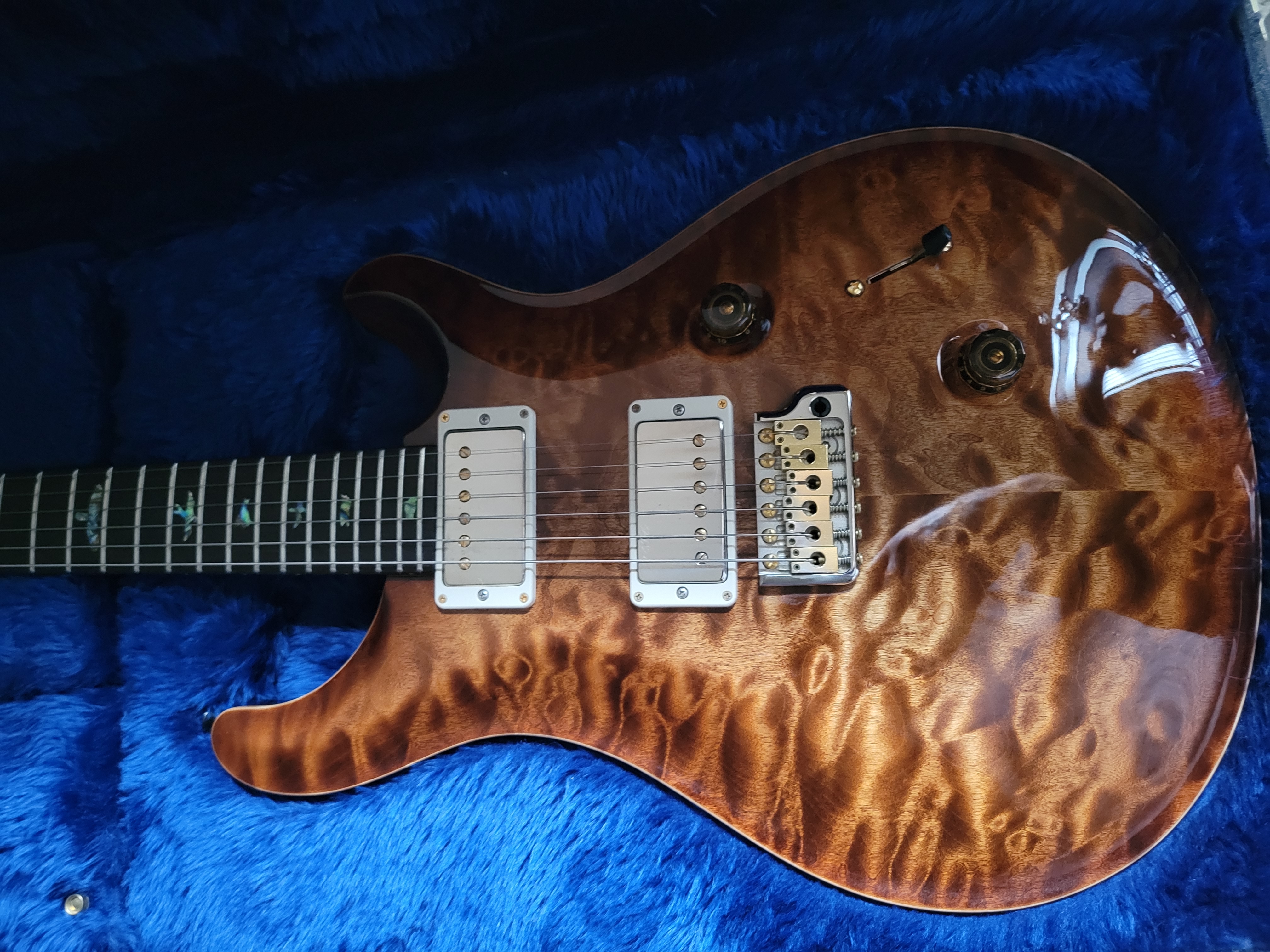 Purchased new from pitbull in 2019, original owner. Not really able to play anymore stiff hands. Artist case(black pasley), Korina neck and body, coccobolo fretboard. $2500 net. Shipped insured..great transaction with Sloanthebone