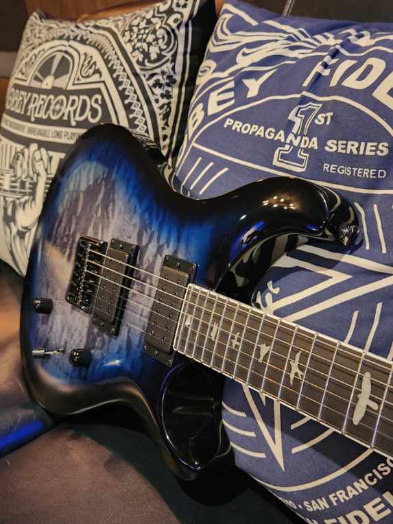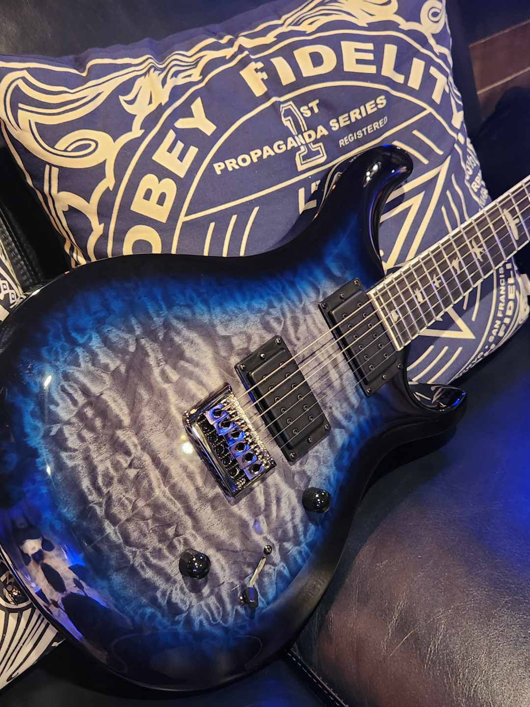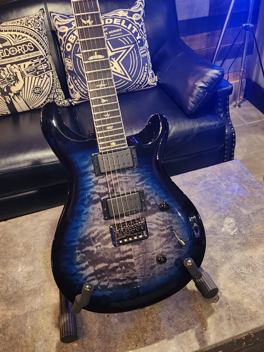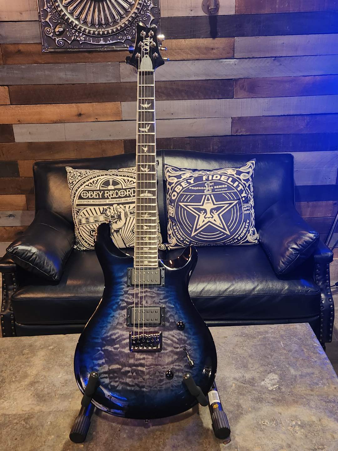 The SE Mark Holcomb model truly stands on its own in the PRS lineup and delivers addictive playability thanks to some unique specifications, including a 24-fret, 25.5” scale length wide thin satin maple neck with 20” radius ebony fretboard. Holcomb’s signature pickups provide the right amount of output and articulation whether you’re playing sophisticated chords or solos and whether you’re playing alone or working in the mix of a band. Other specifications include a quilted maple veneer, black chrome hardware, and a 3-way blade pickup switch with push/pull tone knob for coil tapping. Comes with gig bag.