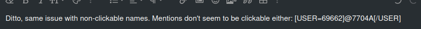 Possibly useful note: when I went to edit this post, it seems that the software recognized the mention above as a user profile link, despite it not displaying as a link. I didn't type up the BBcode, it was autogenerated by the forum after saving and then going back to edit.