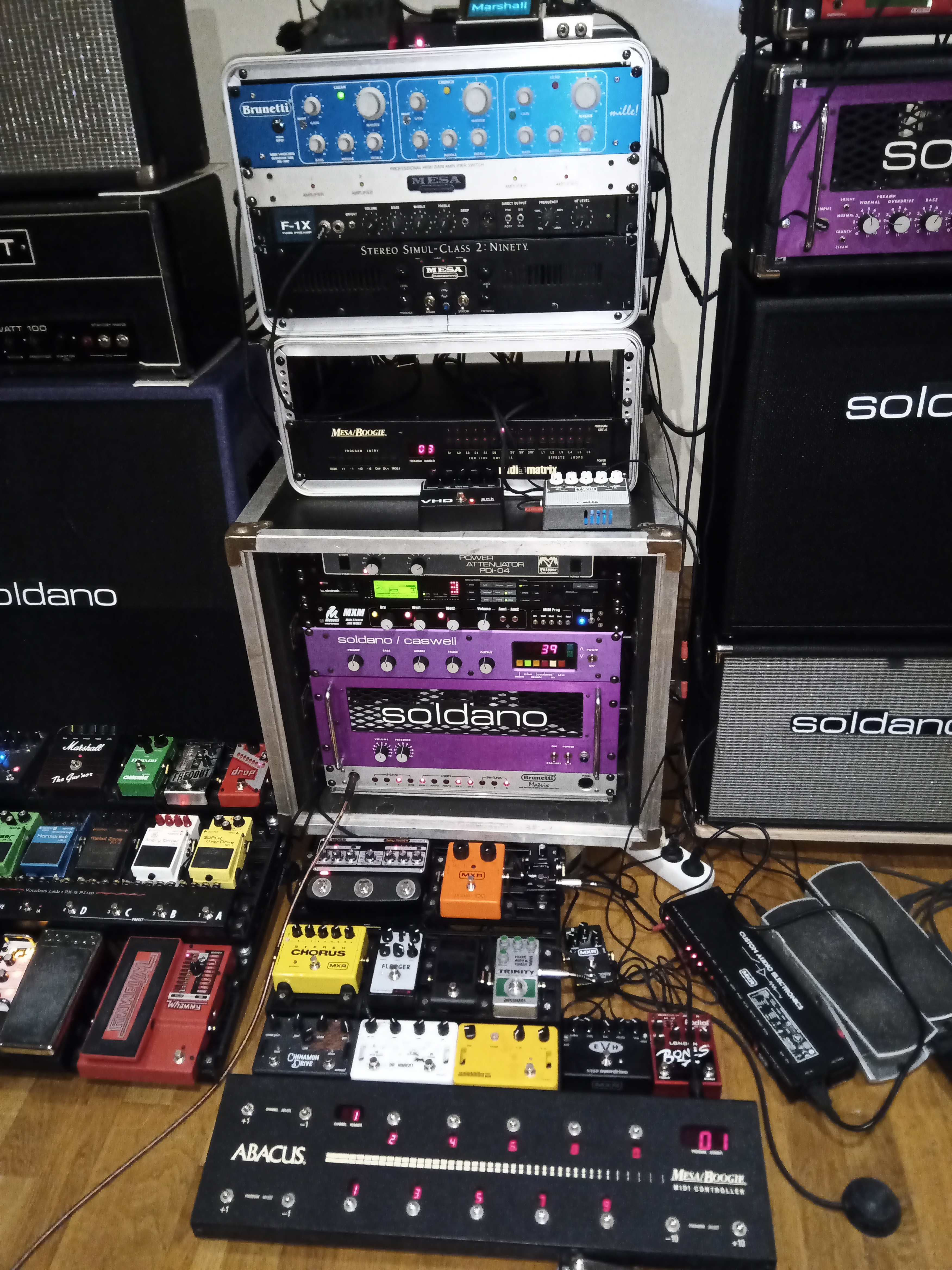 Indeed racks still rule ! As promised, some new toyz pic. Just got the Brunetti Mille and Mesa Midi Matrix in the mail a few days ago. My own self-indulged christmas LOL. I've had the Abacus for more than 25 years so the Midi Matrix was on my list. I just needed a good deal nearby (not easy or very common where I live). I tested the parallel preamp loop function of the Mesa Matrix and it's working pretty well. I had the Brunetti Mille, Alembic F-1X, VHD SNK and Shift Line Twin in the four matrix preamp loops for comparaison purposes. No ground loop, no tonal degradation, pretty much straightforward, which I always like. The clean channel of the Mille is nothing to sneeze at compared to the Alembic or the Shift Line. Even more surprising is I found I prefer the Shift Line fenderish tone to the the Alembic despite being much smaller and a fifth of the price.