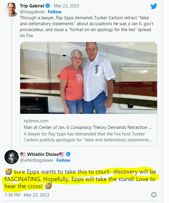 No , they tell you what will happen if Epps tries to proceed . You want him to to proceed right , get it all out in the open ha ha ha ha haSo Twitter posts made by redneck Trumplickers is supposed serve as some sort of factual evidence now?