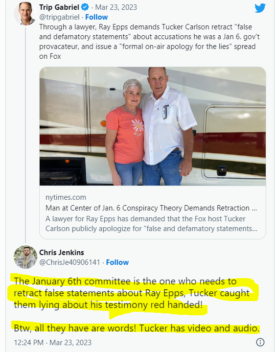 Odd that Carlson in all his coverage of Epps somehow missed the 6 or 7 recorded calls between he and Pelosi that you “know” is factual.