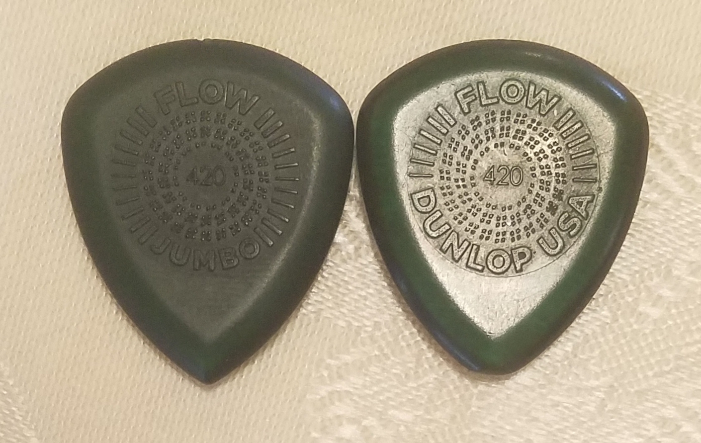 Flow picks have a pointed tip and more attack then the regular tortex picks which is why I like them.