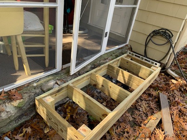 I'm sure Floyd eye is gonna give me a verbal berating for not using beams under the joists, but the span is not that big and it's just for my wife, so she can sit in a pool. She always wanted a pool, but our yard is too sloped and I'm not staying in MA. I'm not looking forward to trying to figure out the sand pump. More joists to go in, and more supports, stairs leveled, but I wanted to get the frign lattice done first, as it has a frame and is a pain in the ass. It's not really up to code, but for a floating deck, it will be fine. I have cedar to go on top. Fucking rains every Saturday which is the only day I have to work on this. I hate carpentry. Too many fucking tools required to do this shit.