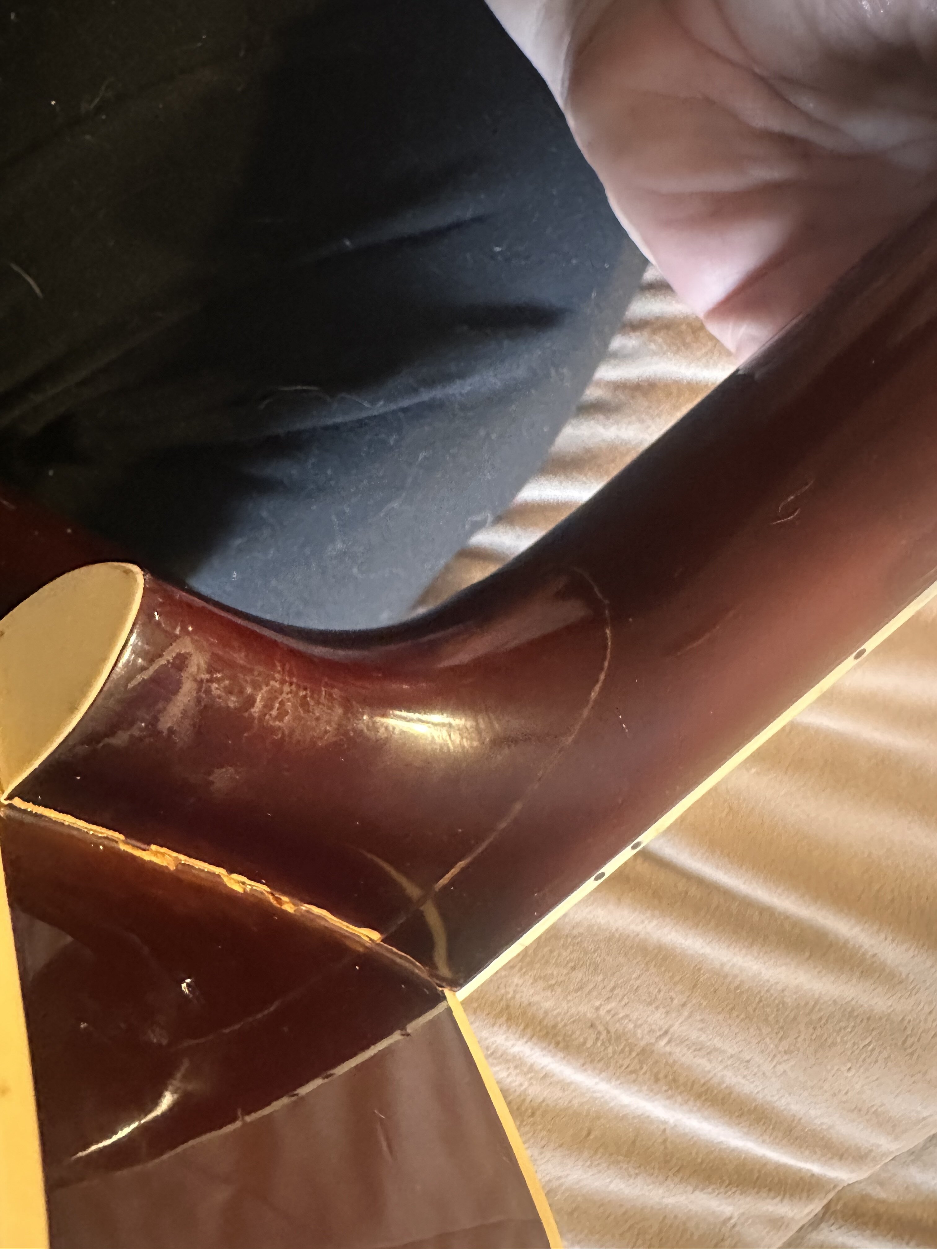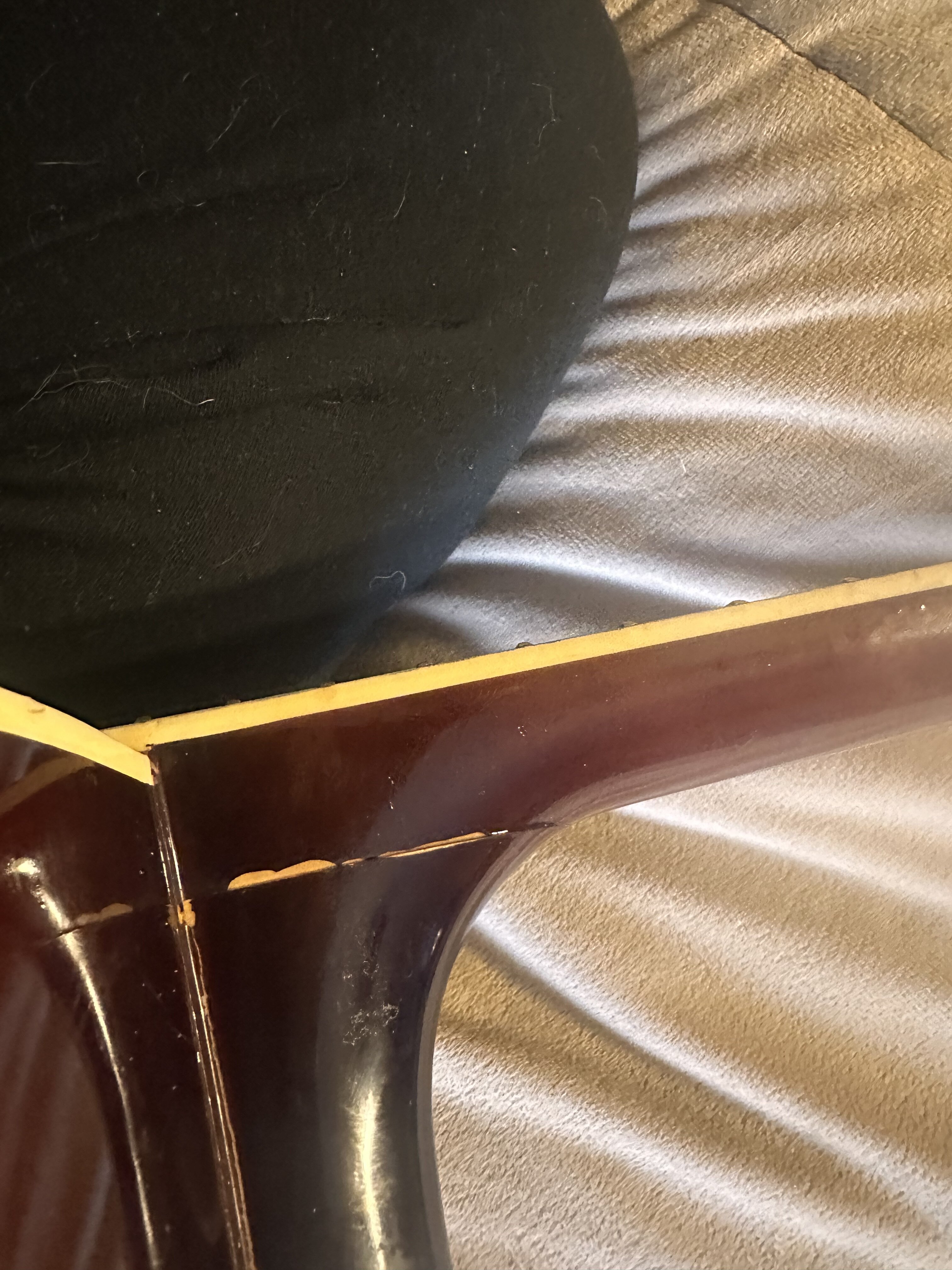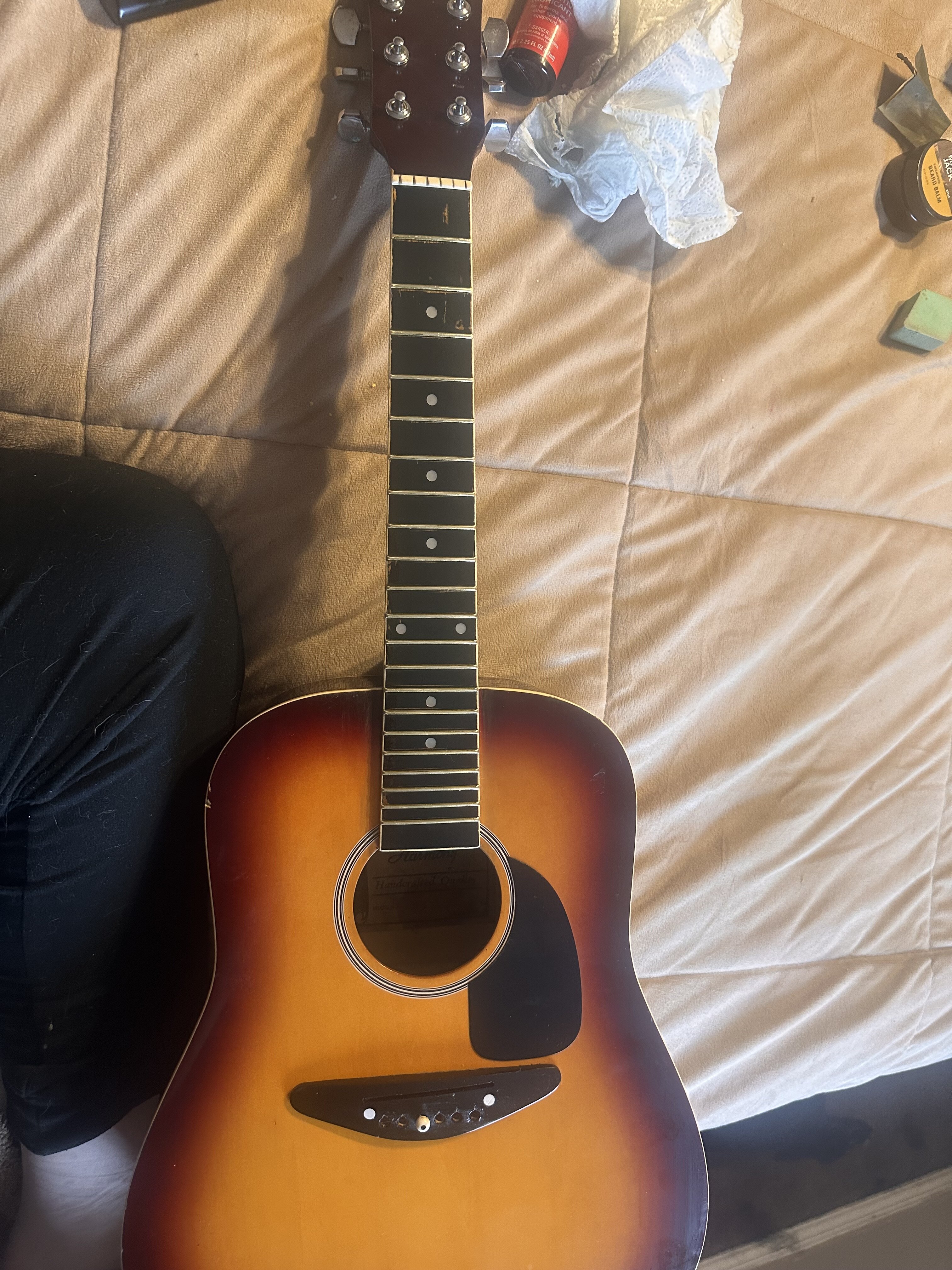 Neck was cracked and seperating from the body. Glued and clamped it so hopefully that’s fine. Started cleaning years of funk from the neck. Cleaned, oiled and waxed the board…after filing and polishing the frets of course. Ordered a saddle and when it comes in I will tweak the neck and do a good setup on it. Old Chinese harmony parlor. I don’t really expect much from it but maybe it will surprise me….nah… it won’t. Ohhh well…something to fuck around with….