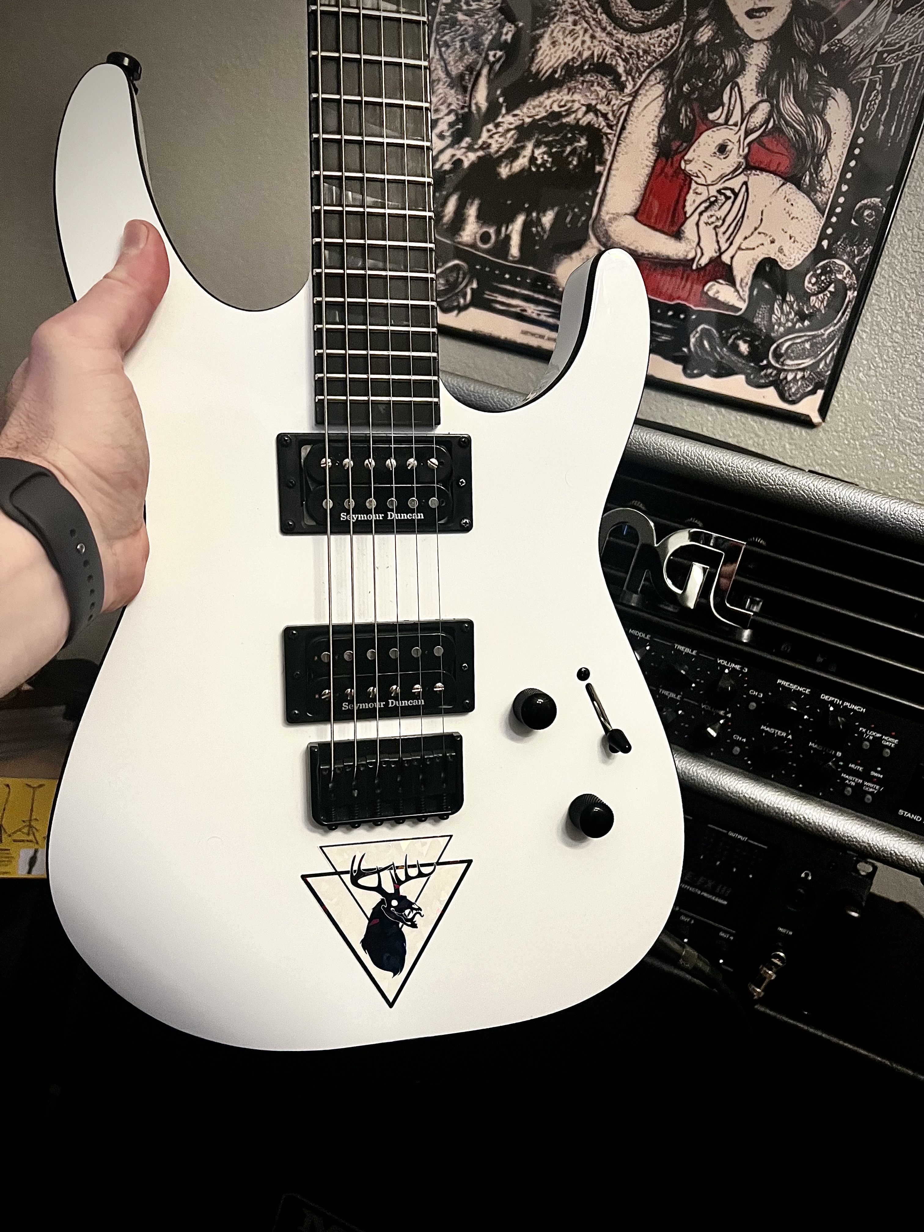 It has black mother of pearl inlays though. Riffing around is ezpz with the side dots, but I find myself getting lost sometimes when shredding.