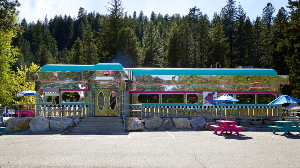 I guess it's not all pink, but it's a really cool diner in the literal middle of nowhere that keeps up a board with all of the milkshakes they have sold. ...
