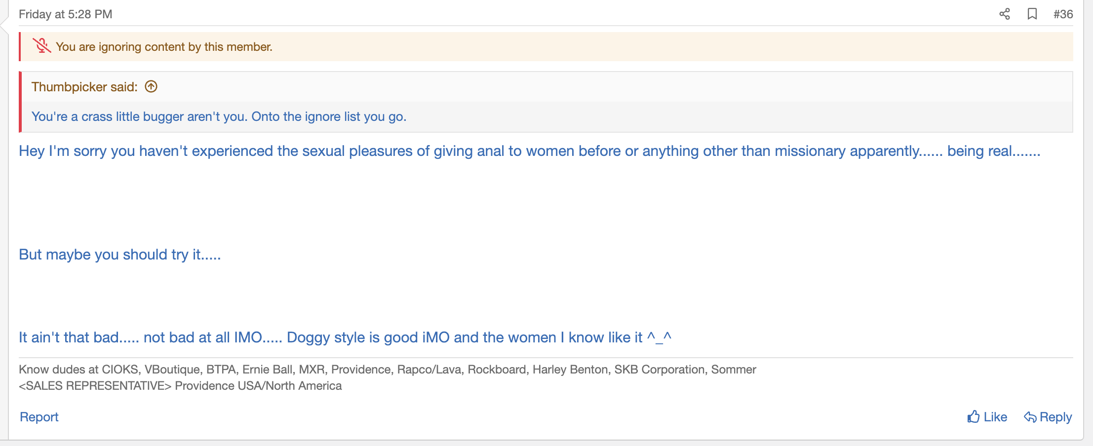The only doubt I believe that any other members had was after he put it there. Up to that point I'm 99% certain that members who weren't following the rules, weren't reading them and that they would if they did. I'm certainly not asking for, taking part, or care about people piling on towards him, but he does at least seem to play dumb on purpose and troll to annoy people. I feel like it's on him to stop trolling more than other members. Plenty of us have come in here hot and eventually settled in. It's on him, really. In fact he still has about a week before the giveaways signup closes to convince people that he's participating with to join the giveaway. I stand by what I told him and I'm not banning him from it, he's banning himself from it.