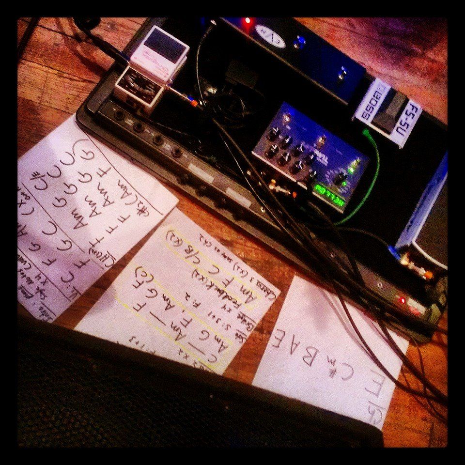 In the front I run a 90s TS9, a Blackarts Black Forest Fuzz, and a MXR delay for some white noise, and for feedback.