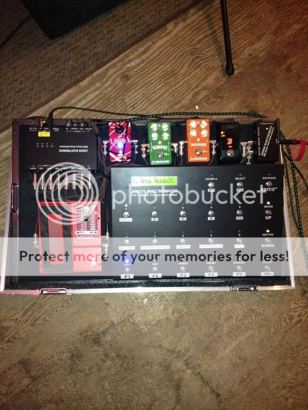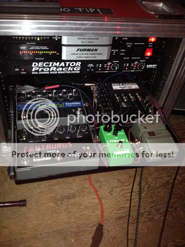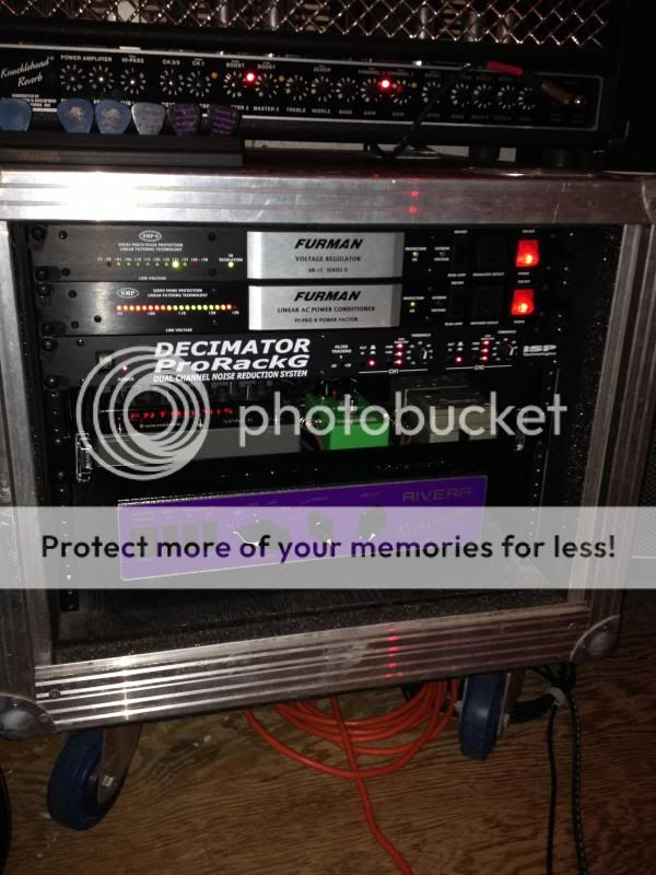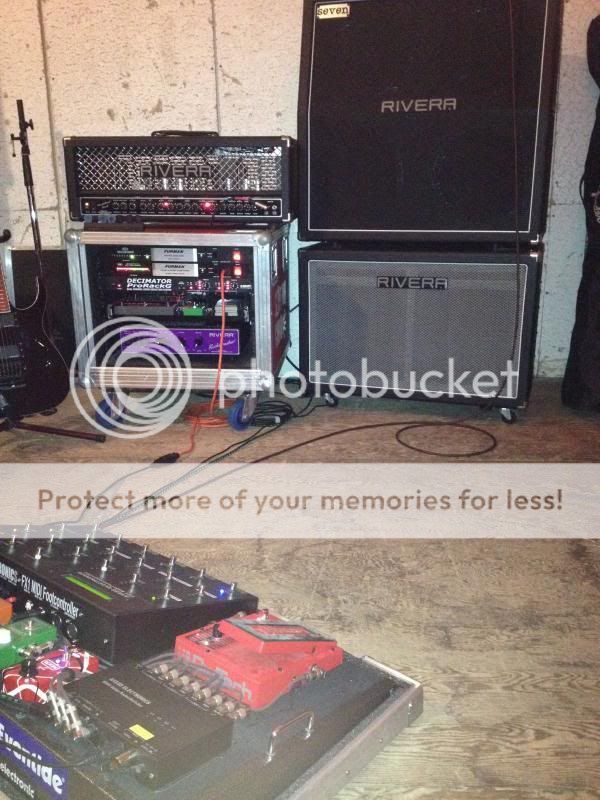 IMHO, what always screws up these threads, is it turns into a picture whoring contest with people posting 19 huge pictures of EVERYTHING THEY OWN. These threads are supposed to mean post up your main rig, or live rig, not necessarily your whole collection. I'm not trying to be a jerk, but just think it would be "cleaner" to see what people are using as their main rig, with say a limit of 3 pics or so. It would make for a nicer reading thread, especially if you are interested in seeing how people have their live/main rigs setup. That gets tough when every piece of gear they own is in their pics.