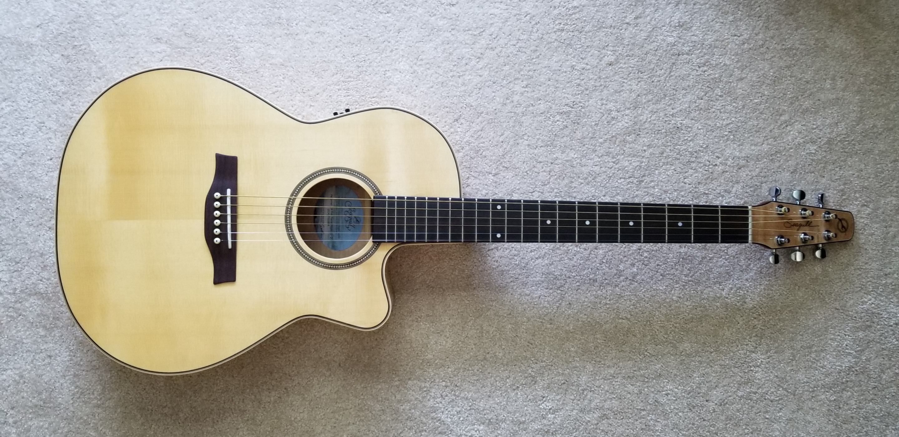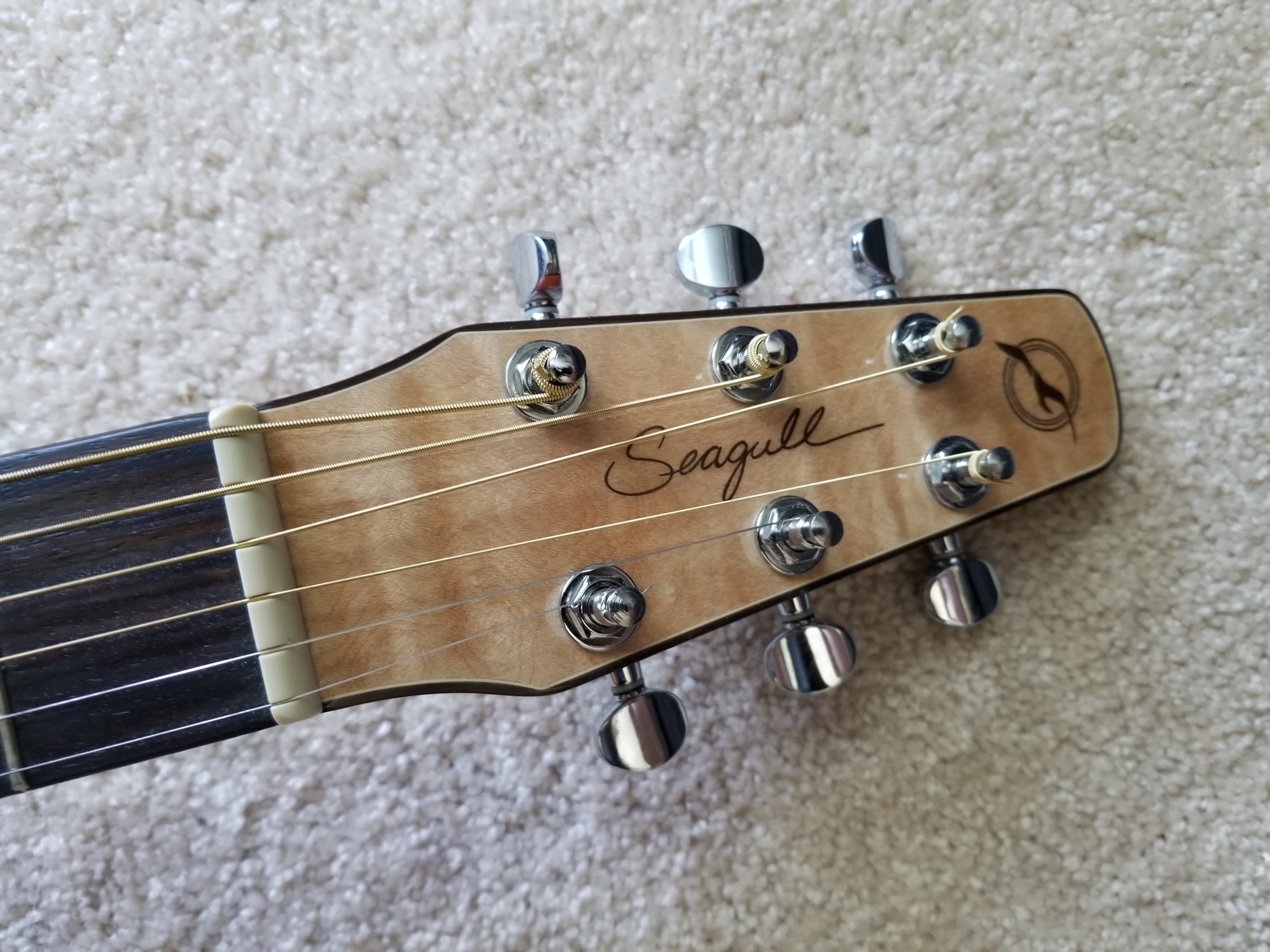 I am selling my Seagull CW Folk Flame Maple HG QIT acoustic electric guitar. The guitar is in overall very good shape, a couple minor cosmetic flaws on the clear coat on the top of the guitar (notated in one of the photos). All electronics are working as they should. Comes with the original soft case.